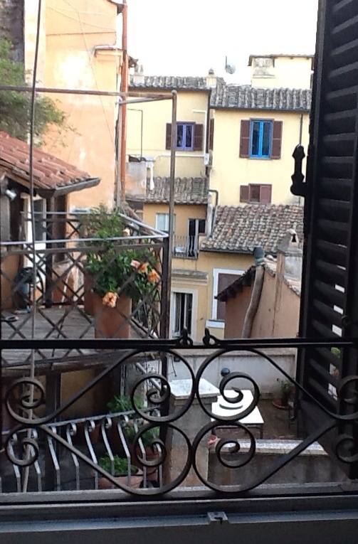 Our apartment (Via del Pellegrino 75) has turned out to be perfect for our first trip to Rome. Like many apartment buildings here, there is graffiti on the outer door (see The Italian Lesson post) but the entry is inviting. We are on the fourth floor (really the fifth floor in the U.S. since Europeans begin with 0, the ground floor) and our unit is in the back, so it is quiet in spite of being in a busy part of the city. Lots of windows, views of rooftops. Church bells until 10 p.m. Seagulls around the clock. Within twenty minutes walk of the Vatican and the Colosseum. We must stay until next summer to try all the nearby restaurants and bars. See you then!