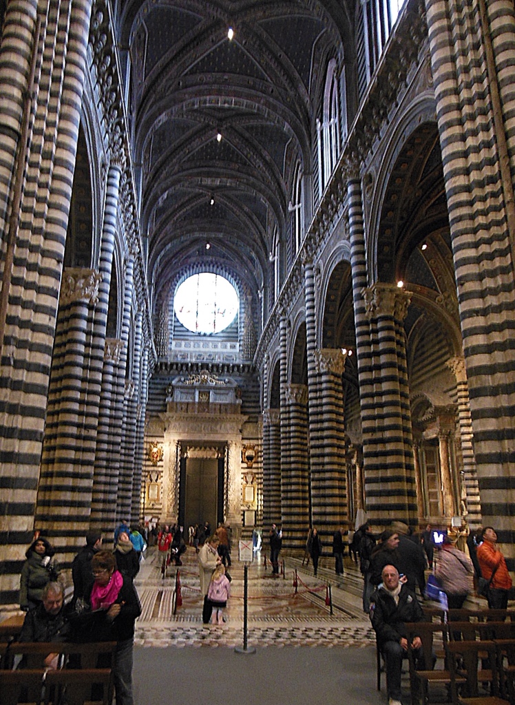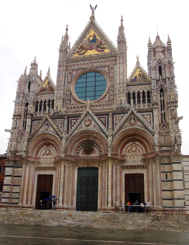 It was a stormy day in Tuscany today, so we journeyed south to Siena to see one of Italy's few fully Gothic churches, a foreboding, but spectacularly beautiful place. A city of 57,000, Siena is built on a series of hills about an hour-and-a-half drive south of our home in San Baronto. It is difficult to capture such an amazing church in pictures, but here are a few from our visit to the Siena Duomo, built beginning in 1136.
