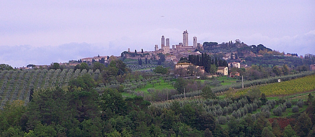 Our Sunday drive on Saturday took us to the medieval town of San Gimignano. Perched atop a hill in central Tuscany, the town's 13 towers dominate the skyline. Built in the 12th and 13th centuries, these towers once guided pilgrims as they made their way to Rome along the northern European route. Today, the towers still serve as landmarks, guiding visitors from around the world on a trek through the city gates.