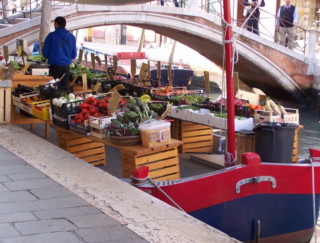 I snapped this photo as we wandered alongside the canals of Venice, not realizing the history that surrounds this one-of-a-kind shopping venue. After a little online research, I believe it is known as The Vegetable Boat at Campo San Barnaba.