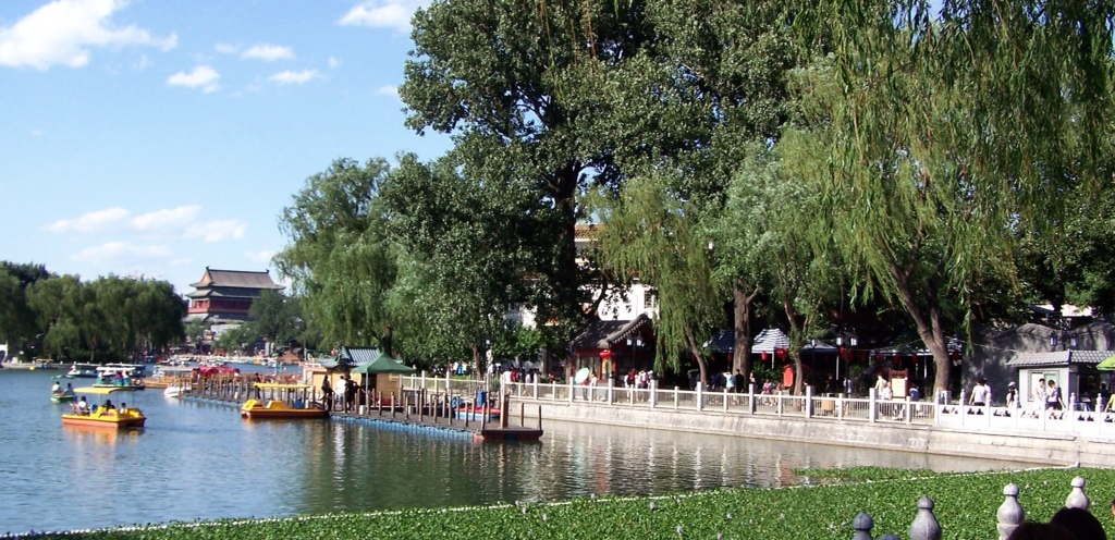 A popular so-called hutong neighborhood is near the Black Lakes area about a mile from the Forbidden city. There are many bars and cafes around the lakes. Tourists and locals stroll and bicycle around the lakes.