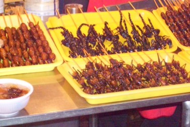 For me, the answer to the first two questions was “no.” When walking along an outdoor food court in Beijing, some Chinese men offered me what looked like a grilled centipede from a stick. I turned them down and they laughed. In Scotland, during a wonderful Burns Supper evening at a friend's home, I could not bring myself to eat the haggis. Sue did!