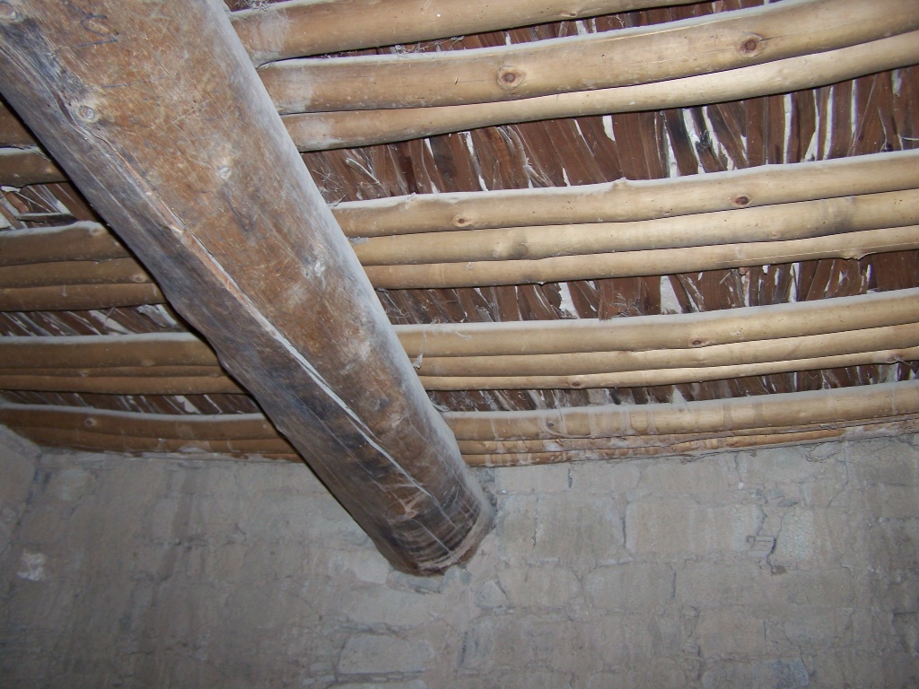 Some of the darker back rooms were believed to have been used as storage. This photo to the left shows the original ceiling, built by the ancestral Pueblo people. Because the ceiling remained so well intact, rings from the trees that created the ceiling allowed the remains to be dated.