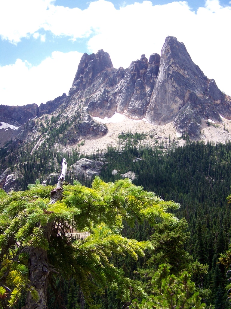 Liberty Bell is the peak as seen from Washington Lookout, the highest point on the drive.