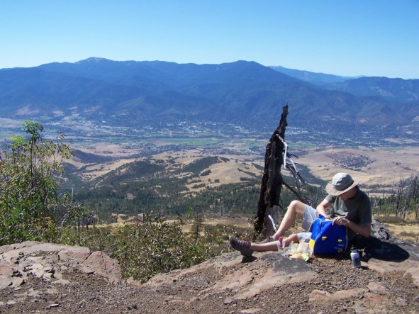 We found a perfect lunch spot. That's Ashland in the distance, nestled at the base of the Siskiyou Mountains.