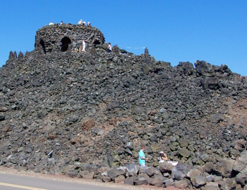 The Dee Wright Memorial Observatory tops McKenzie Pass on an old highway crossing lava fields near the Three Sisters.