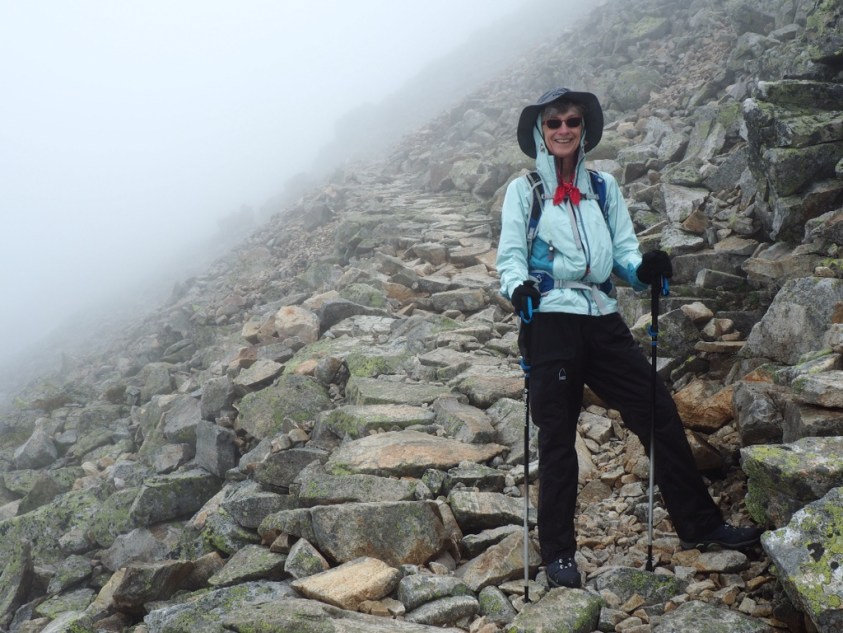 We were strongly advised to begin our trek with two gondola rides from Chamonix, taking us more than 5,000 feet up above spectacular terrain to Le Brevant, more than 8,000 feet high. Clouds blocked our view across the valley to Mont Blanc and made visibility poor for most of the day.