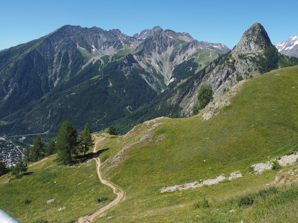 Of course, today started with a steep, 2,500-foot climb, but after that it was the easiest hiking day of the Tour so far. We walked about ten miles at 6,500 feet overlooking a steep glacial valley. The Mont Blanc range on the other side seemed close enough to touch. It was stunningly beautiful.