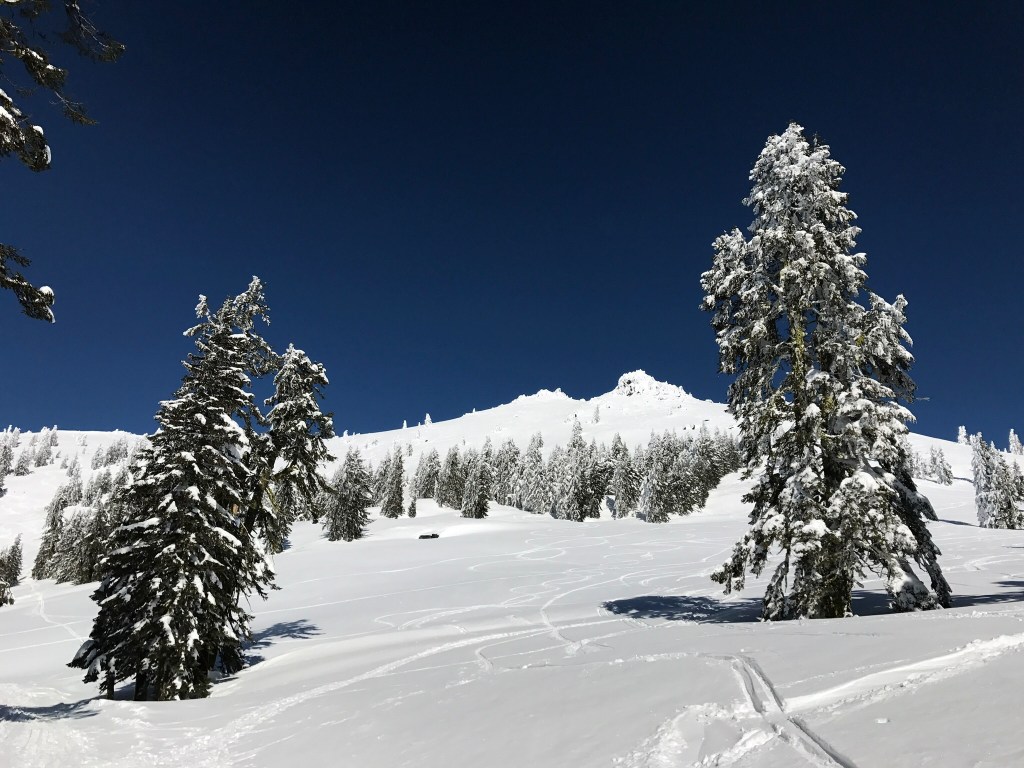 A quick check of the weather report last Monday promised a two day window of blue sky…just enough time for friends Judy and Chris to quickly organize a snowshoe trip with us to our neighborhood ski resort – Mt. Ashland.