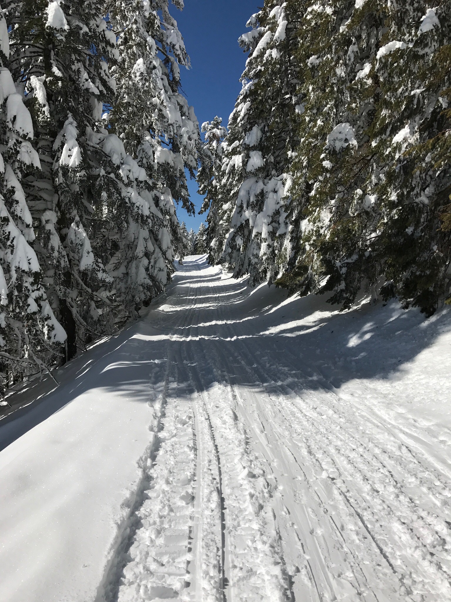 A quick check of the weather report last Monday promised a two day window of blue sky…just enough time for friends Judy and Chris to quickly organize a snowshoe trip with us to our neighborhood ski resort – Mt. Ashland.