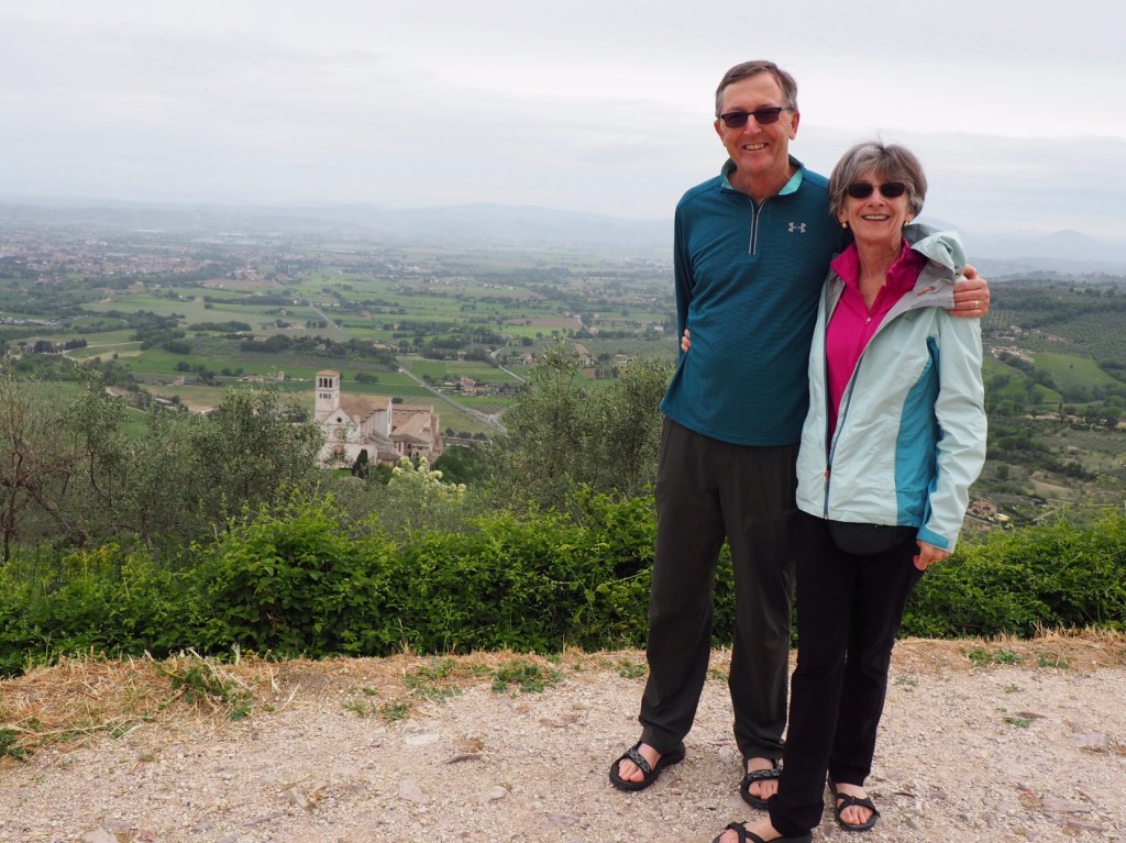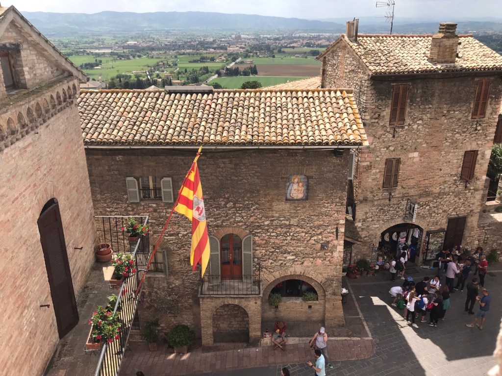 The Way of St. Francis led us into Assisi yesterday, our ninth day of walking. We’ve covered 109 miles and endured 37,046 feet of elevation change. While the above photo appears to show a pleasant downhill stroll, in reality our day began and ended with steep climbs. All a distant memory today as we enjoy the sites of this beautiful city.