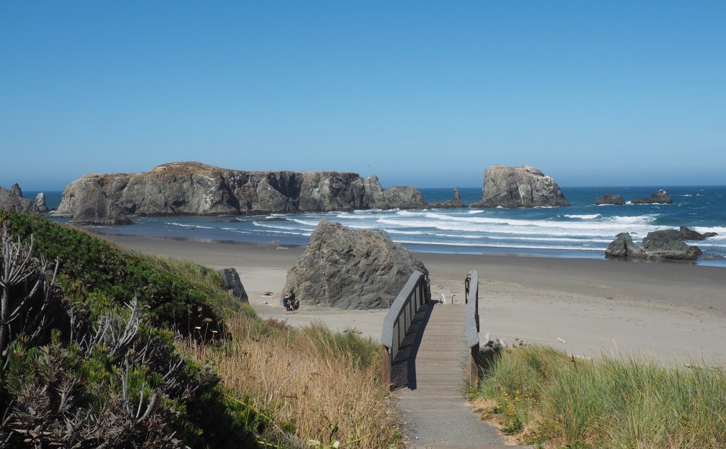The wind continued to blow, as it has since we arrived on the coast, but without a cloud in the sky, it was a beautiful day to walk on the beach in Bandon, Oregon.