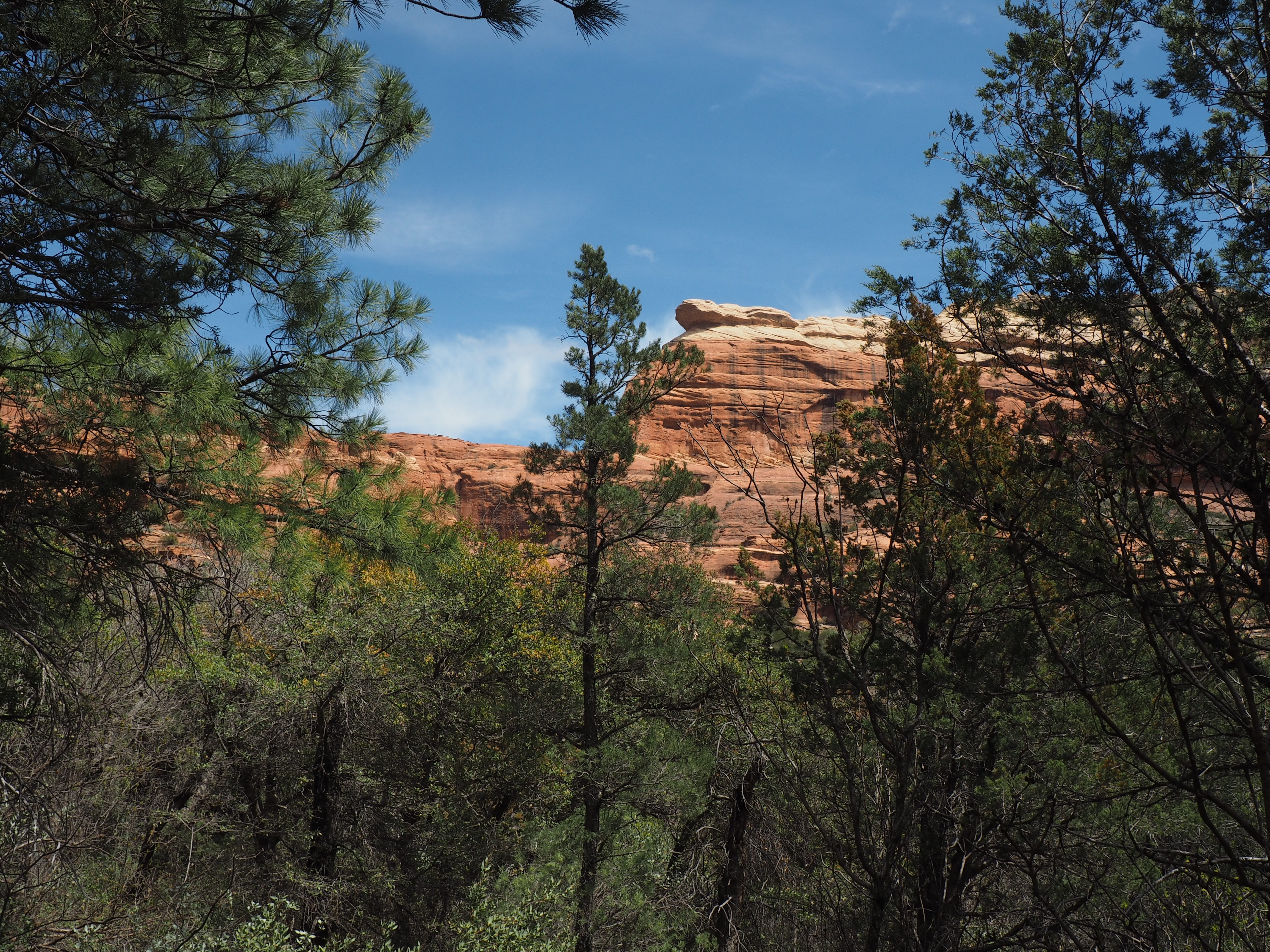 We normally prefer circular hikes that allow us to avoid retracing our steps, but there was only one way out of Boynton Canyon…at least only one safe way out. We followed the dusty red trail in until it dropped us down into the forest, beneath a cover of evergreens. Climbing began toward the end of the trail where we scrambled up a narrow channel of boulders, emerging onto a large, smooth rock outcropping, scattered with handful of other determined hikers enjoying the view.