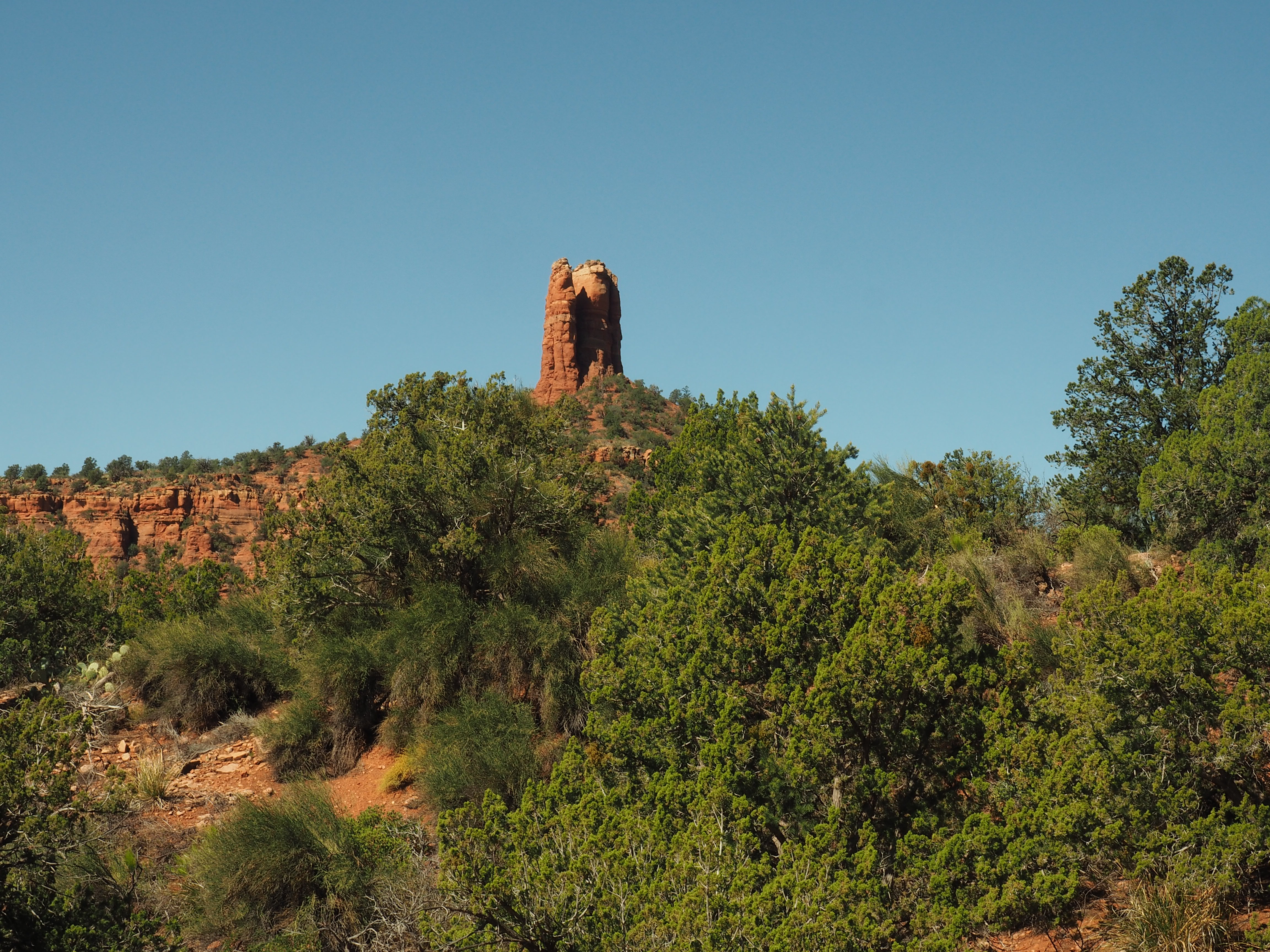 While the trail up to the base of the chimney stack was well-worn and doable, it wasn’t easy. We later realized that what we scrambled up was an informal (not on the map) trail and not the recommended viewpoint we had been searching for. However, the view we had was pretty darn good!