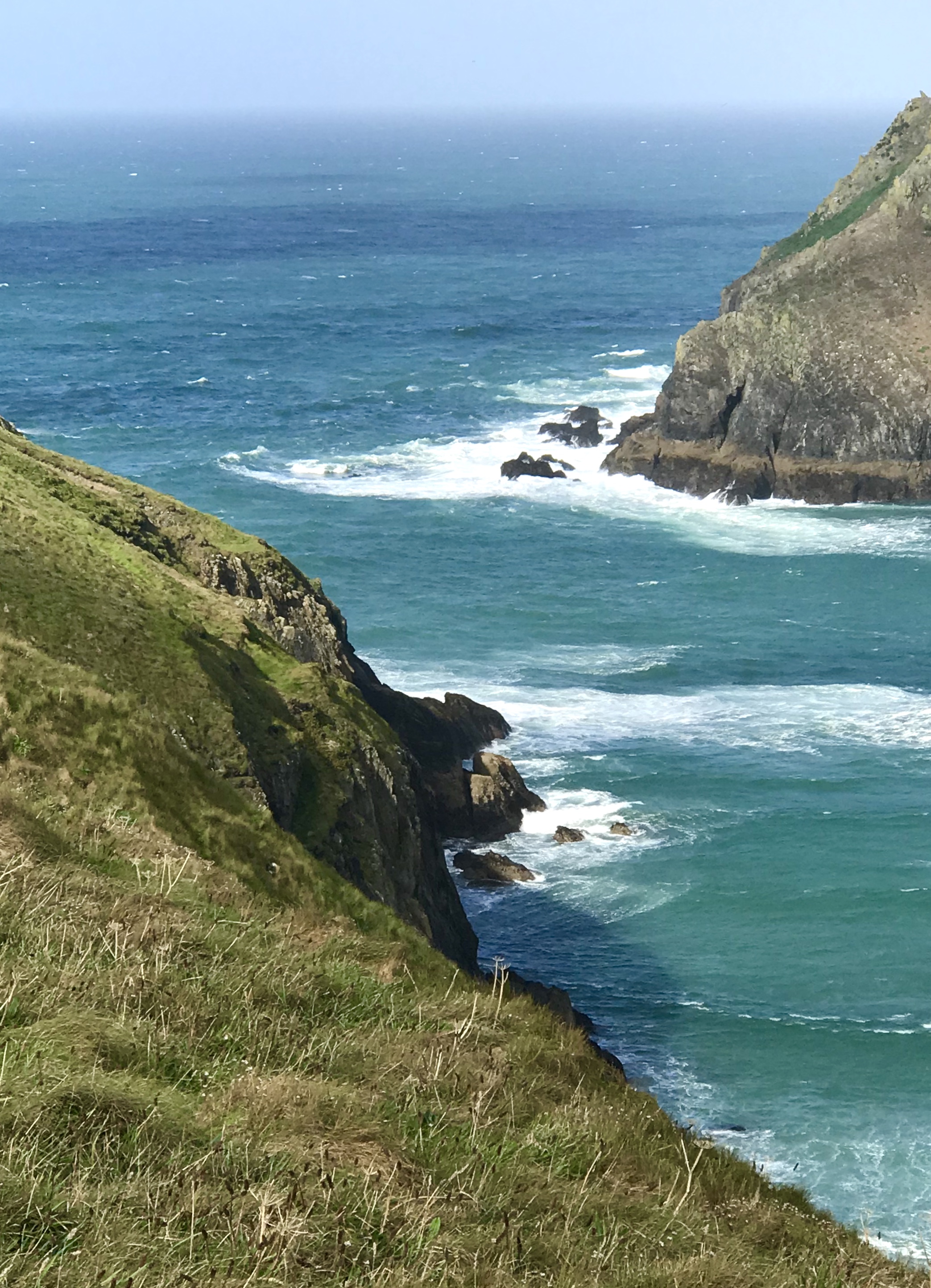 We spent the rest of the walk into Perranporth simply trying to remain upright. Winds whipped off the ocean at 30-40 mph (depending on which weather report is to be believed), the worst we’ve ever walked in.