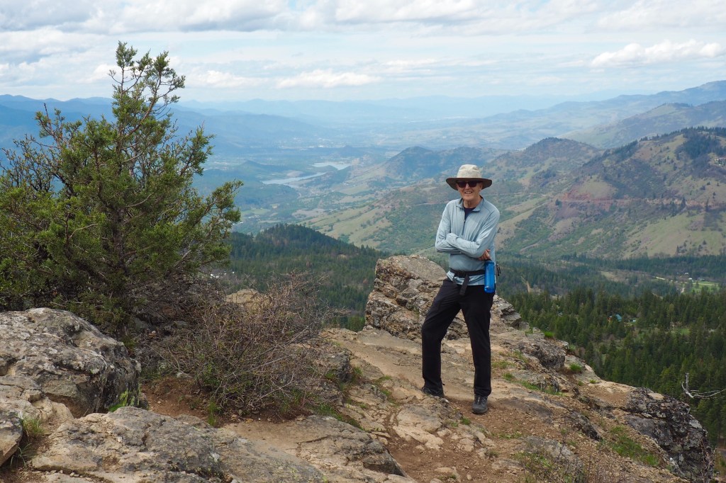 Twenty minutes into our hike, we stepped off the trail and settled into a lunch spot with a view of Mt. Ashland.  Day 45 of isolation for us also happened to be Reg’s birthday, so we celebrated with a hike along a short section of the iconic Pacific Crest Trail.