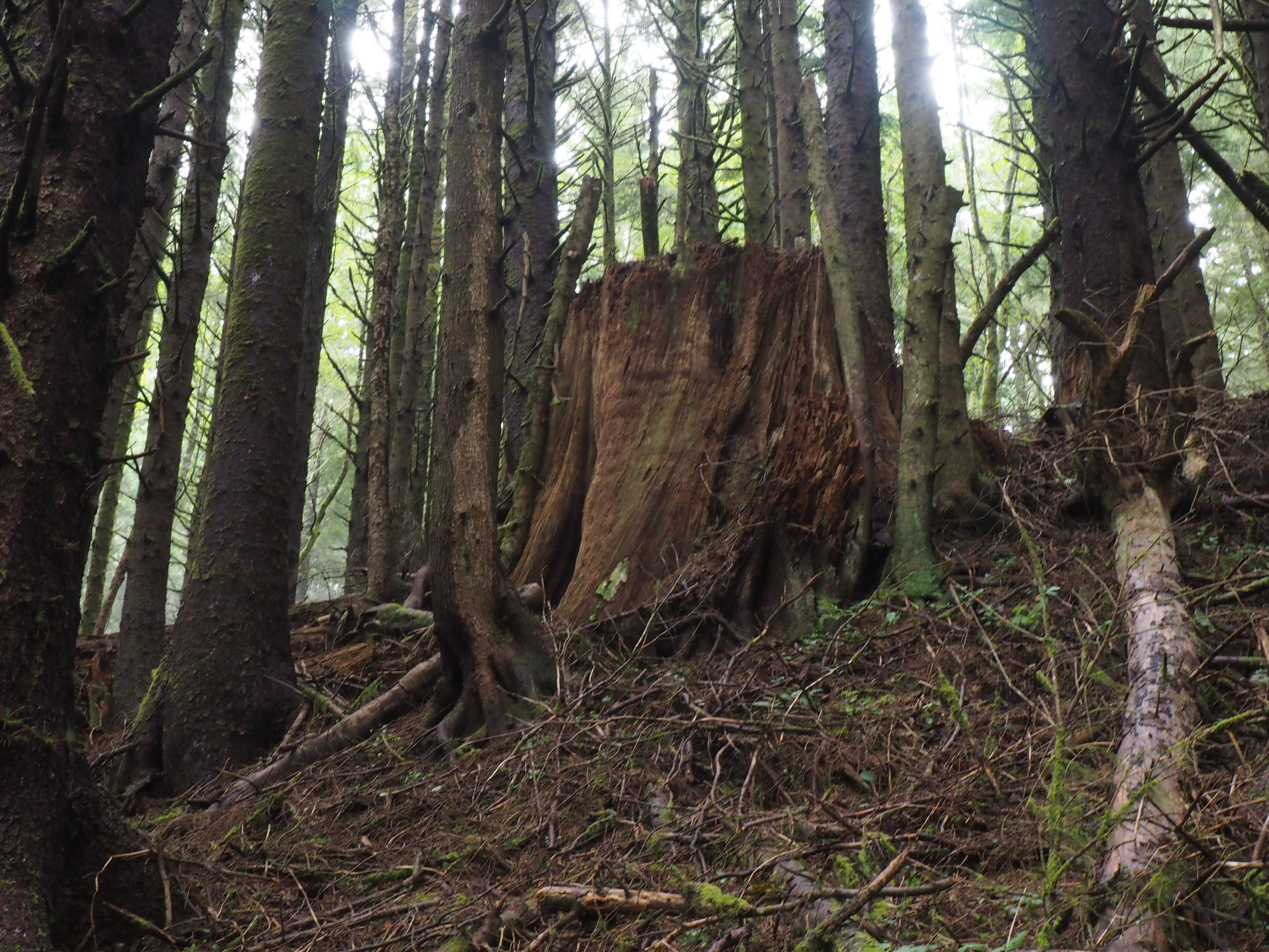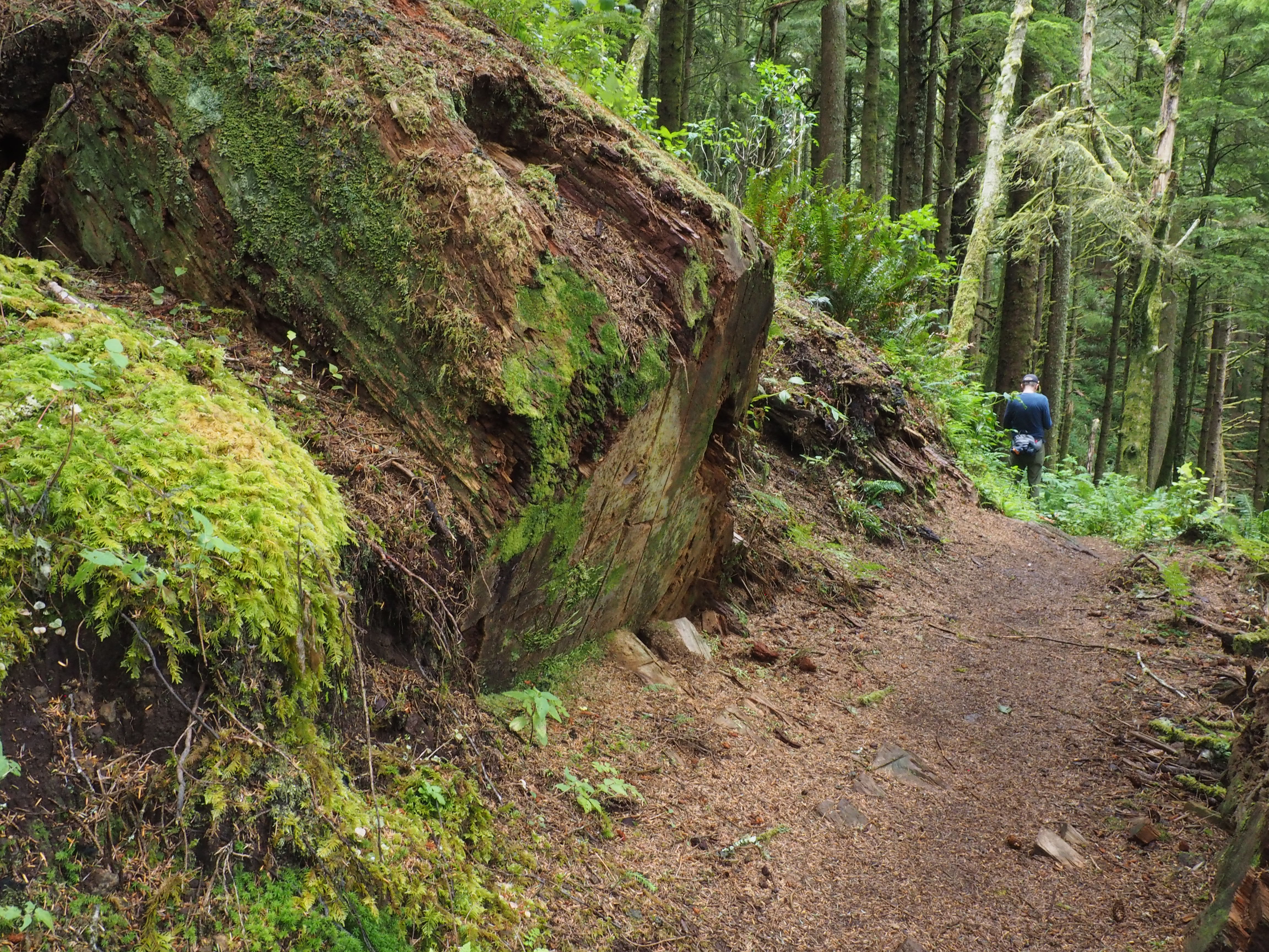 We continued across a short bridge to our lunch destination – the Cape Perpetua lookout. Here, the trail climbs relentlessly uphill until dropping down and crossing a small creek before the final up and down path to the top.