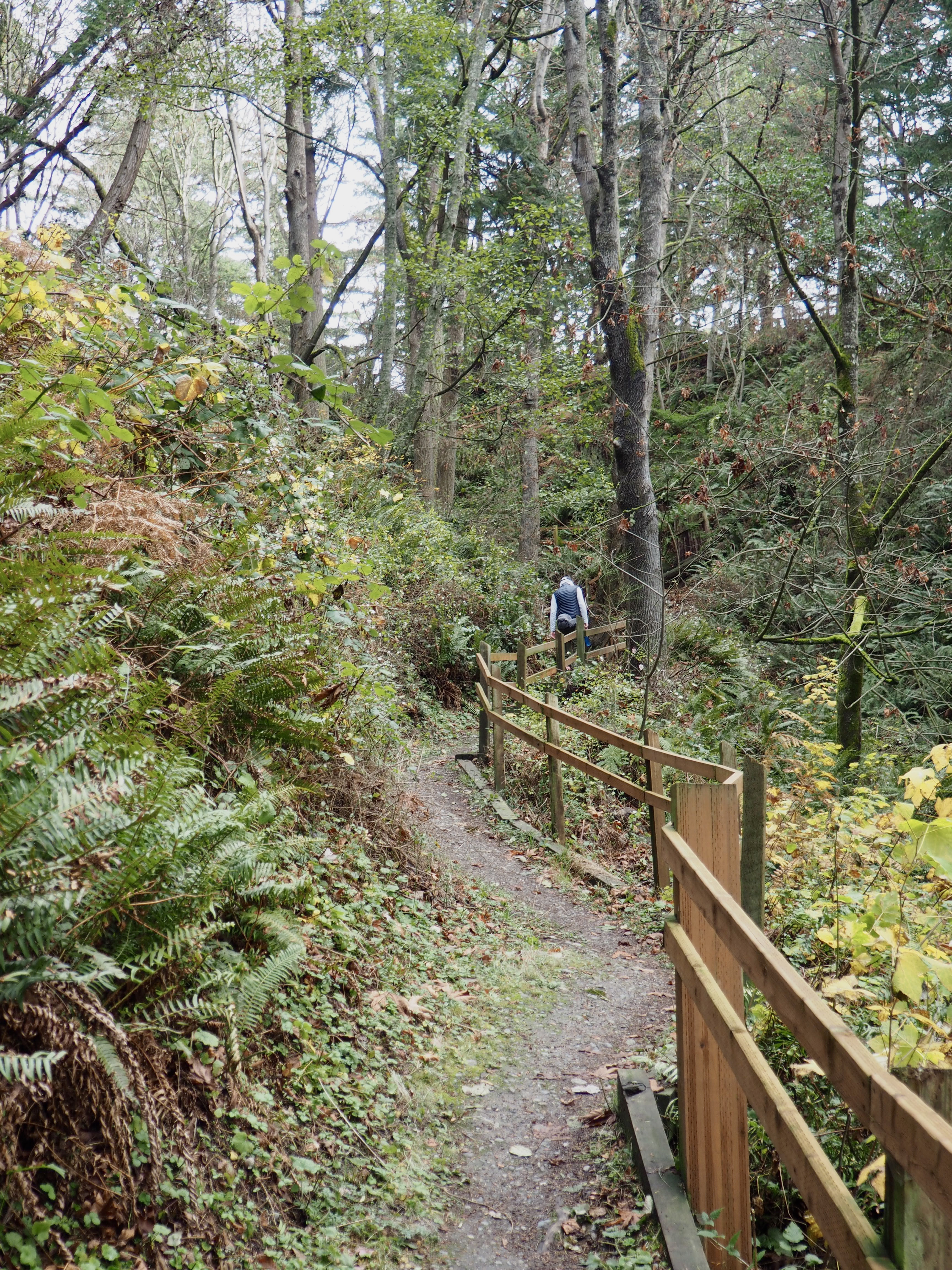 The following day we headed in the opposite direction to explore Camano Island State Park, choosing the loop trail which took us high above the beach, down to the shore and then back up again.