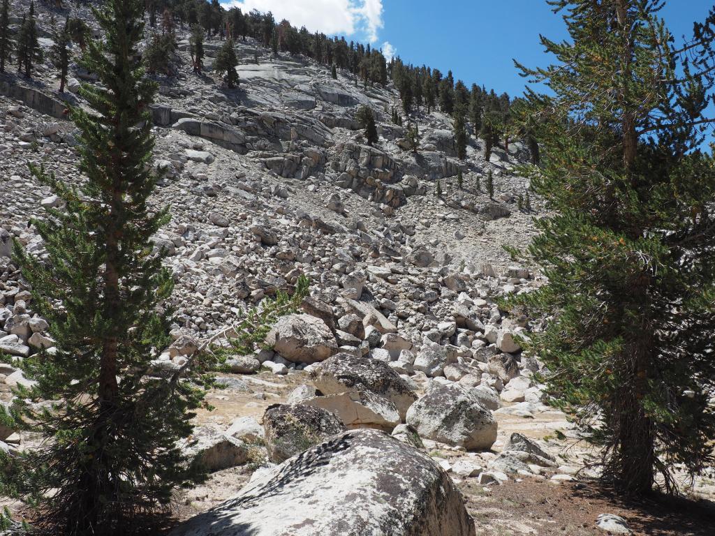 We entered Sequoia and Kings Canyon National Parks area, covering 20 miles in 2 days to reach Guitar Lake where we spent 2 nights. The trail eventually led us along Rock Creek where our second campsite was located. The next morning we had just over 3,000 feet of elevation gain before finally reaching (dragging ourselves) up to our Guitar Lake camp.