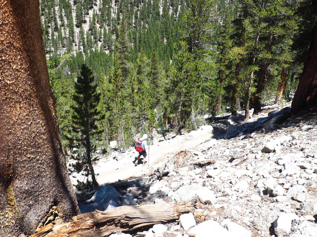 Crossing Wallace Creek and climbing 1,000 feet to the Bighorn Plateau eventually brought us to one of our more unique and out-of-the-way campgrounds near Tyndall Creek. The day was hot with long shadeless stretches that were especially tiring for all who had summited Mt. Whitney the day before.