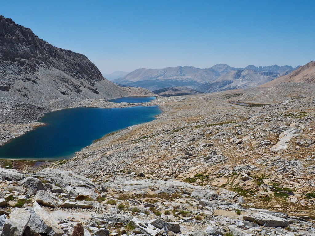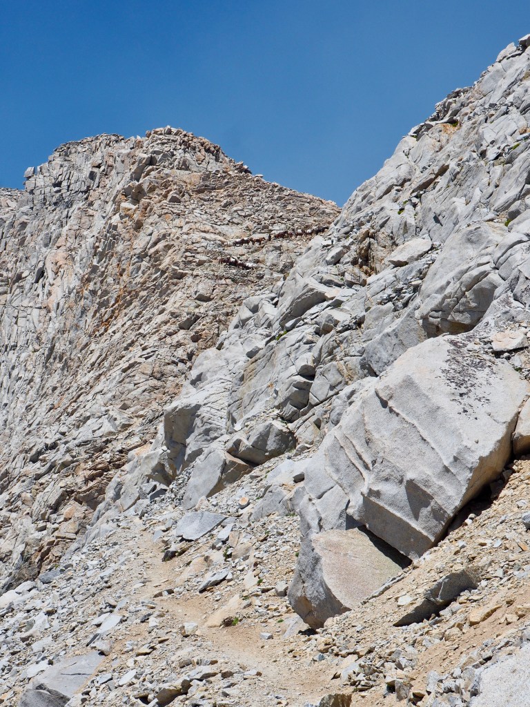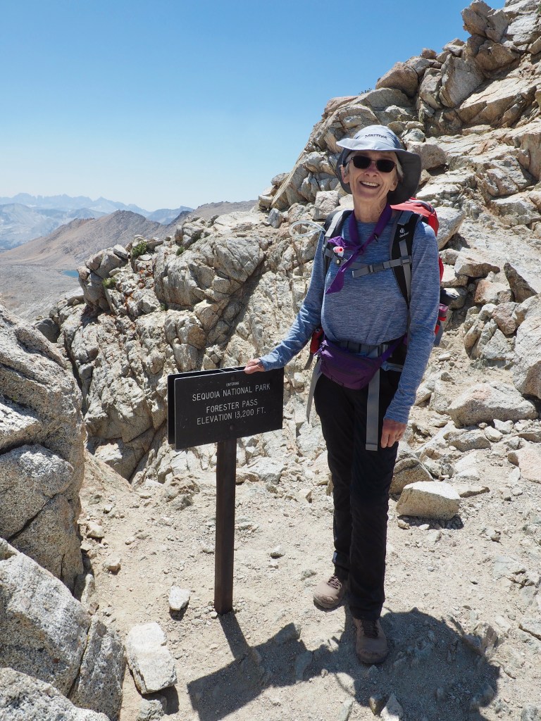 But on our 6th day of walking we were aware there would be no escaping the tough climb ahead. Those of us who chose to sit out Mt. Whitney had no choice but to conquer 13,200 foot Forester Pass. The day wore on and the trail became steeper and rockier as we continued the 2,300 foot climb to the top of Forester Pass. We soon found ourselves on a series of long switchbacks, struggling over chunky granite cobblestones and clambering over boulders that stretched our legs to the limit.