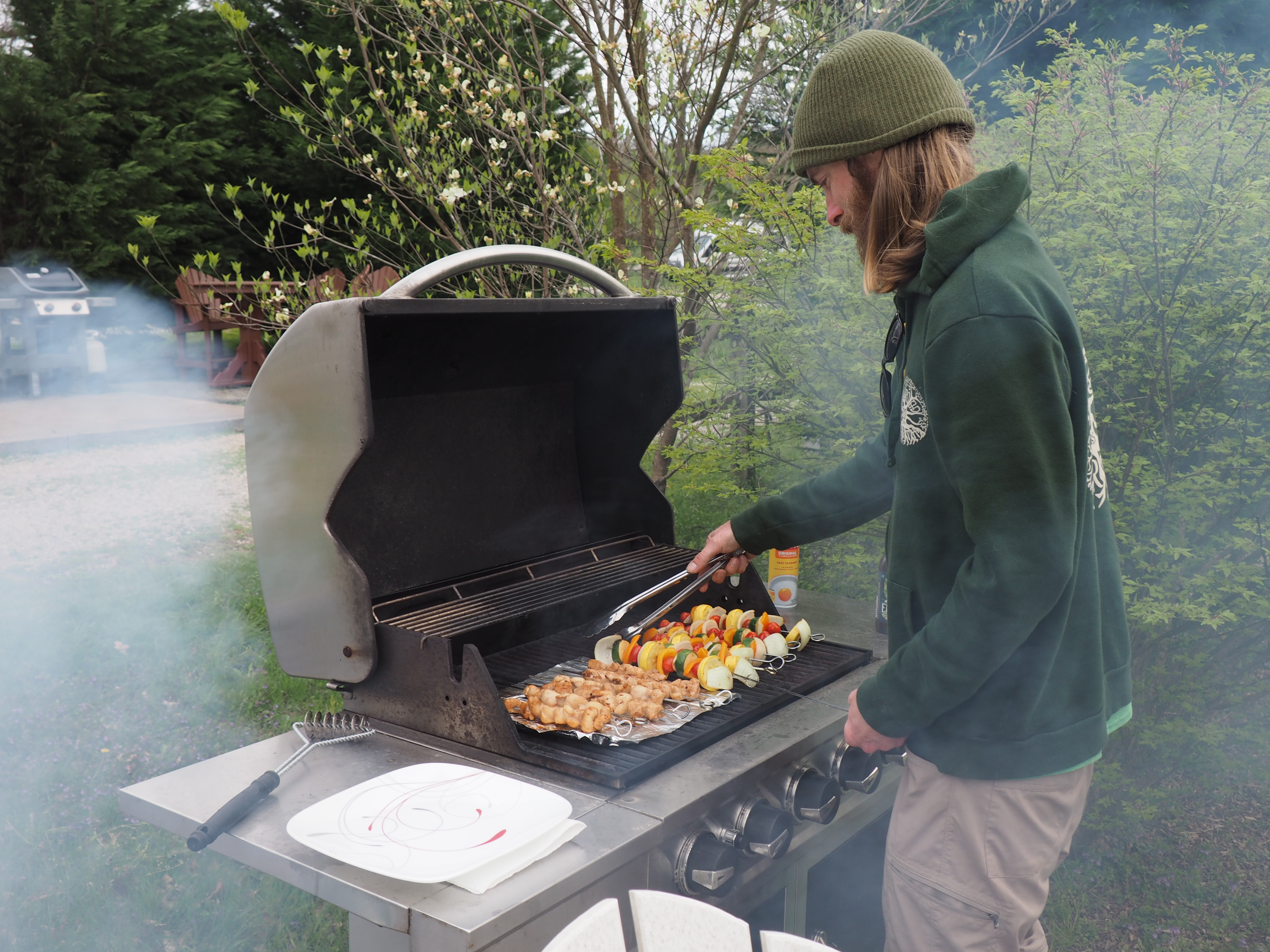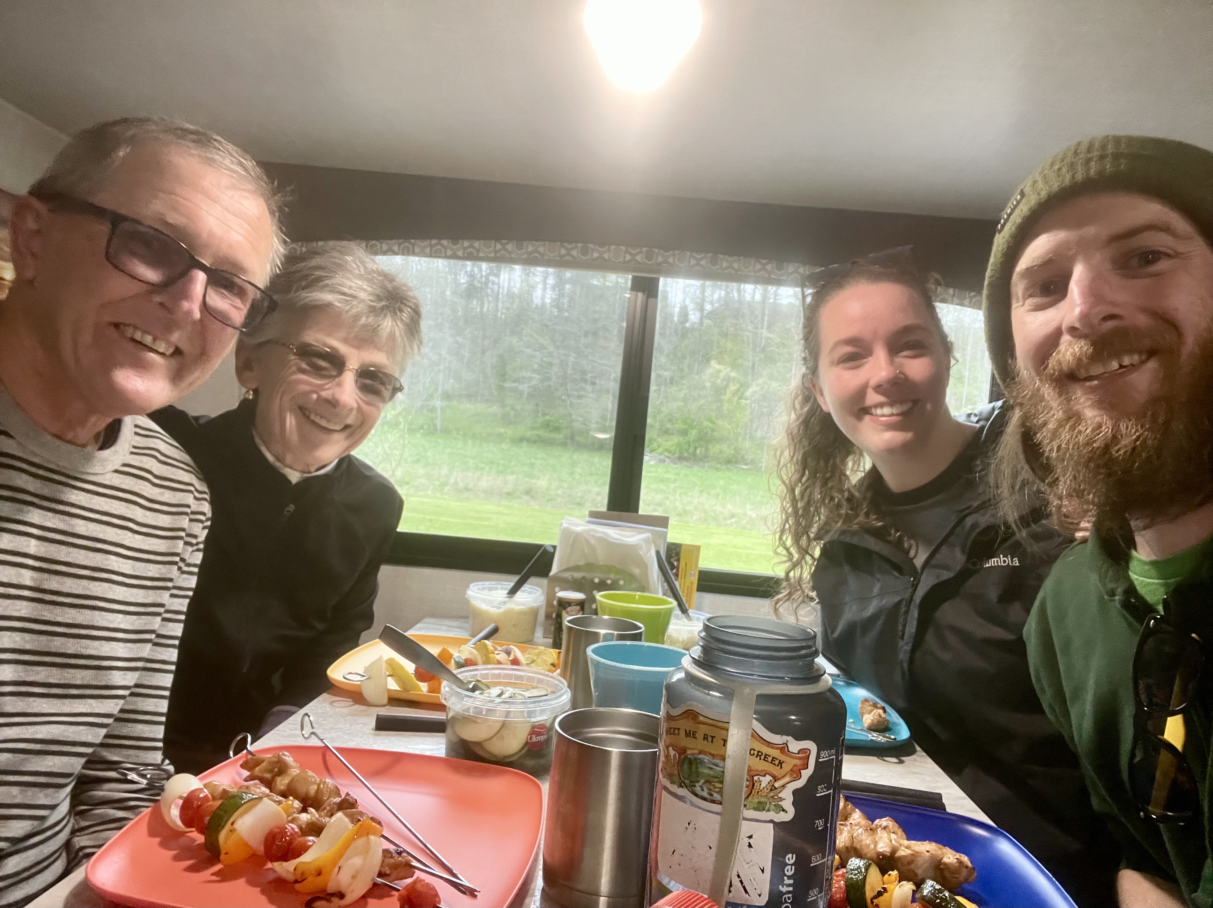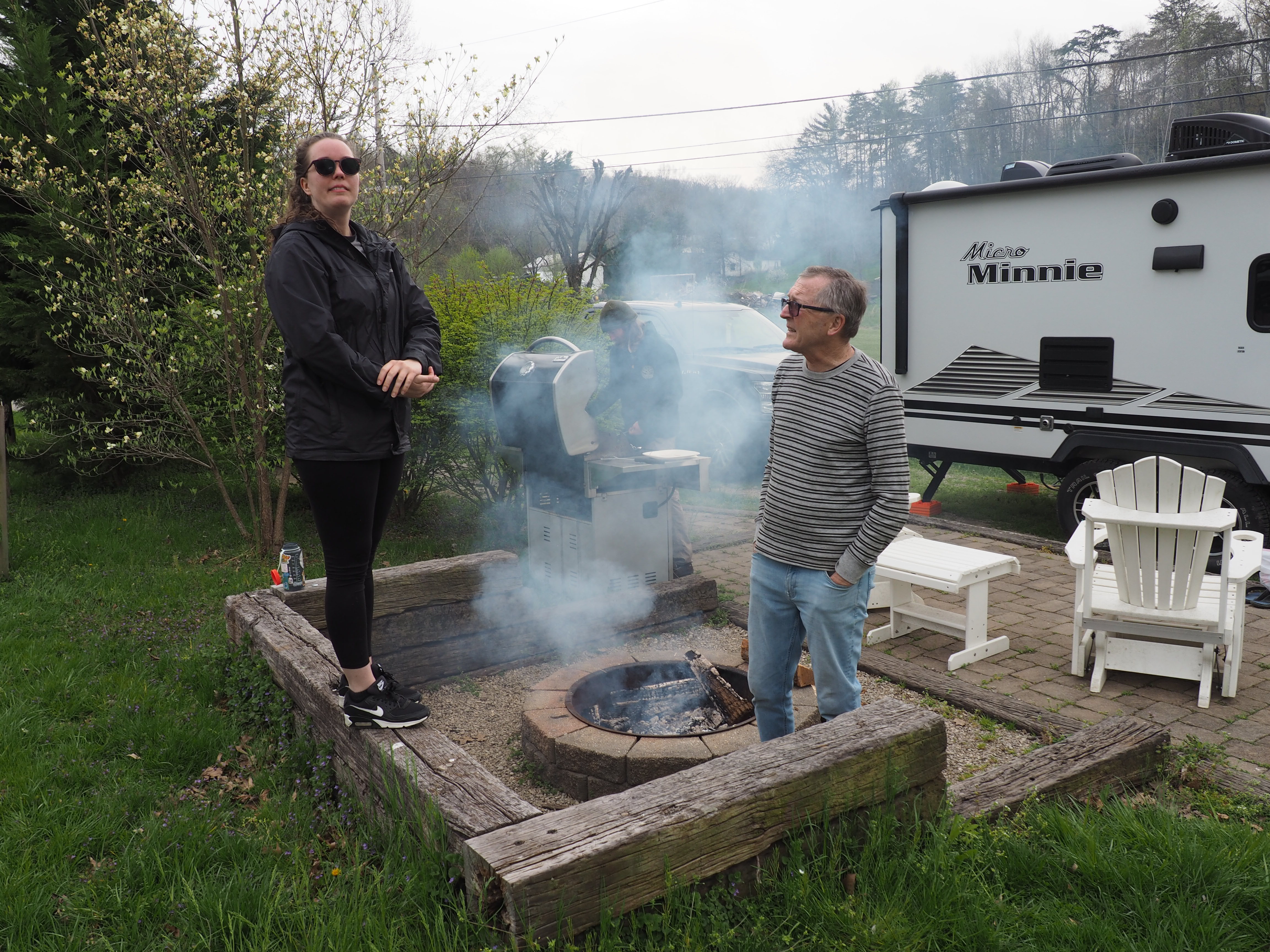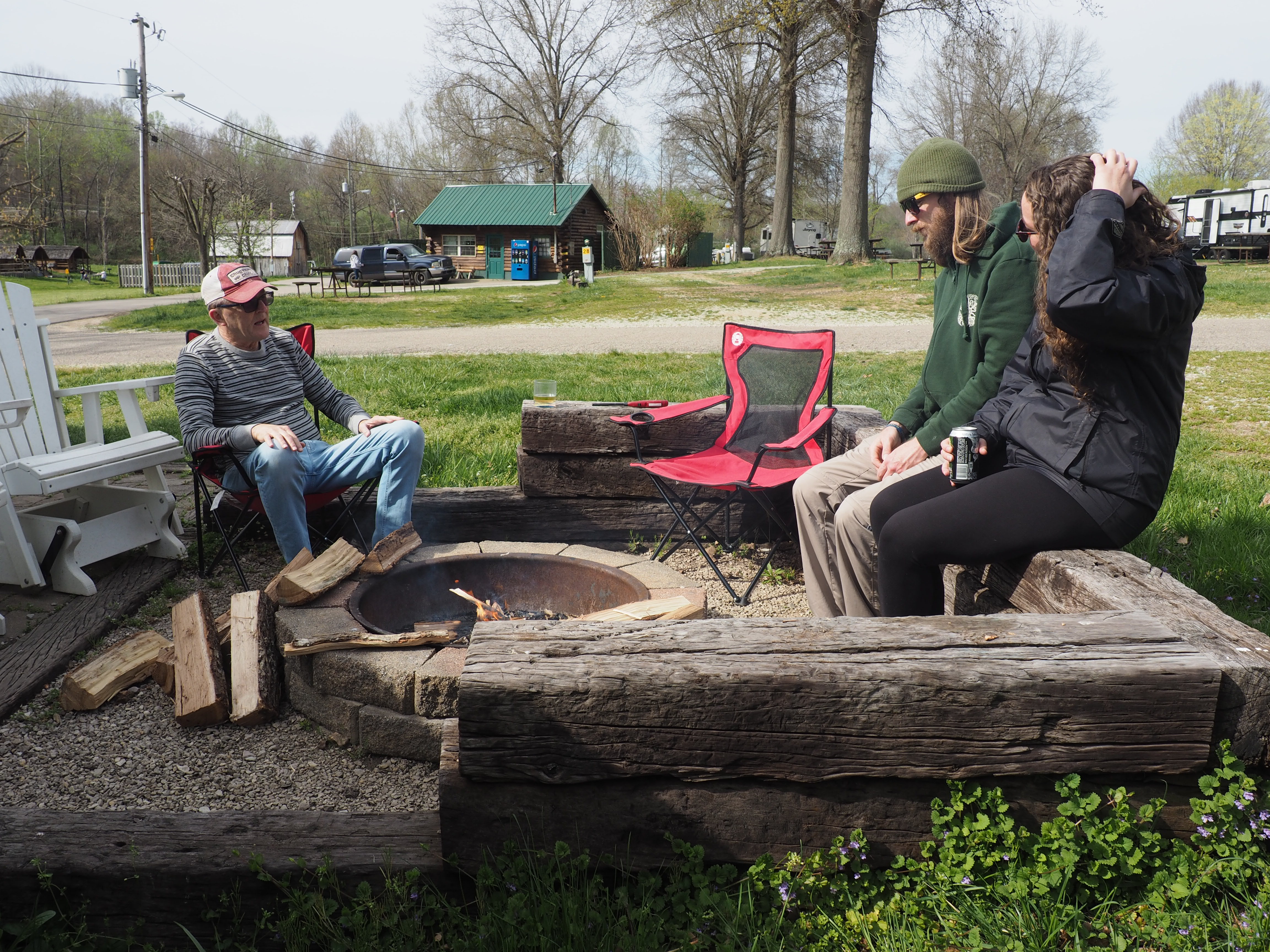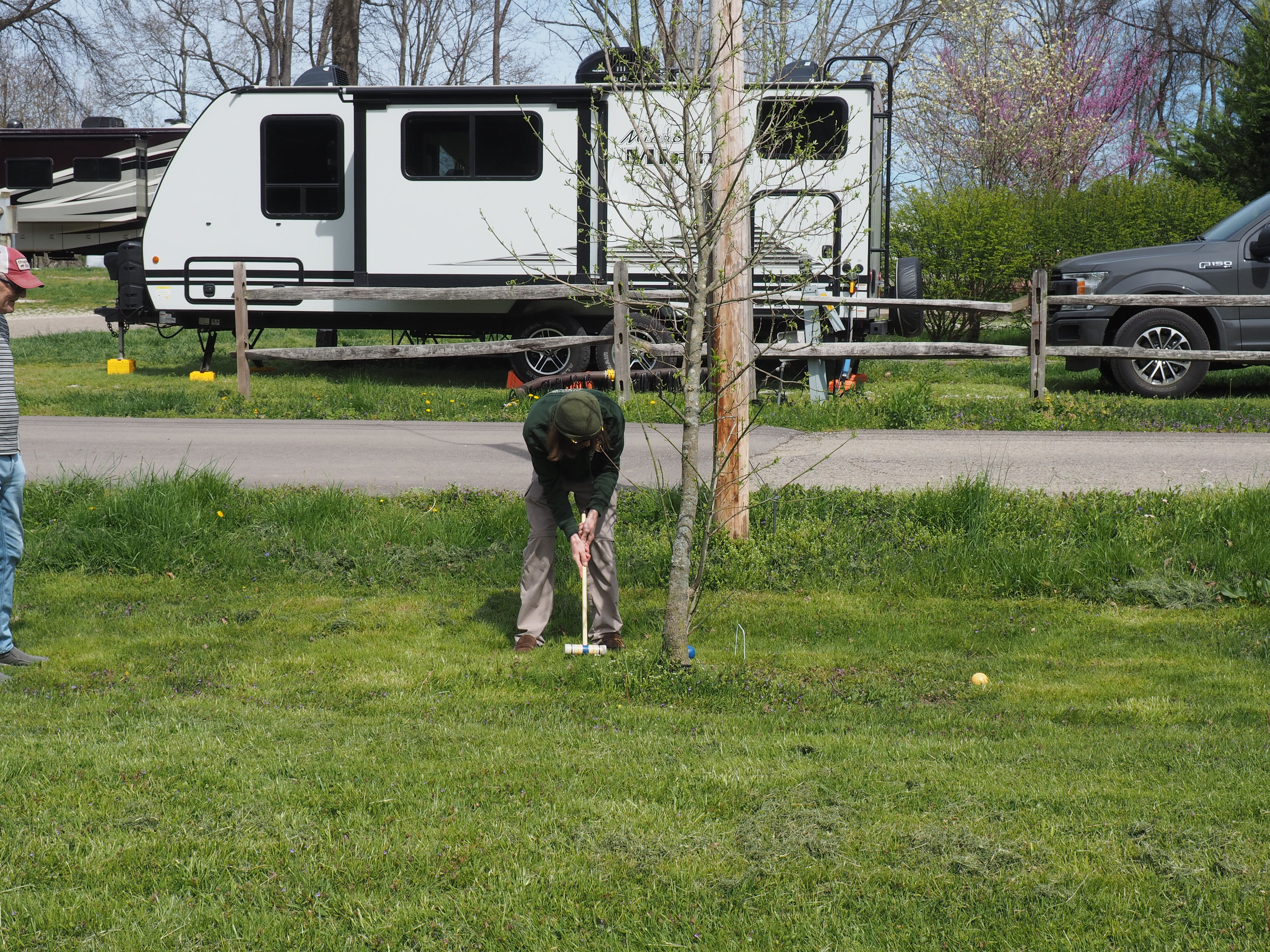 Our perfect timing allowed us to spend Easter weekend with Chris and Gail in and around Charleston, West Virginia. We relaxed with dinner out Saturday night and spent Easter Sunday hanging around our campsite. After two games of croquet, where the guys fought for first place and Gail and I battled it out for last place, we rounded out the evening gathered around our cozy trailer dinette feasting on barbecued shish kebabs. And then it was time to say goodbye…
