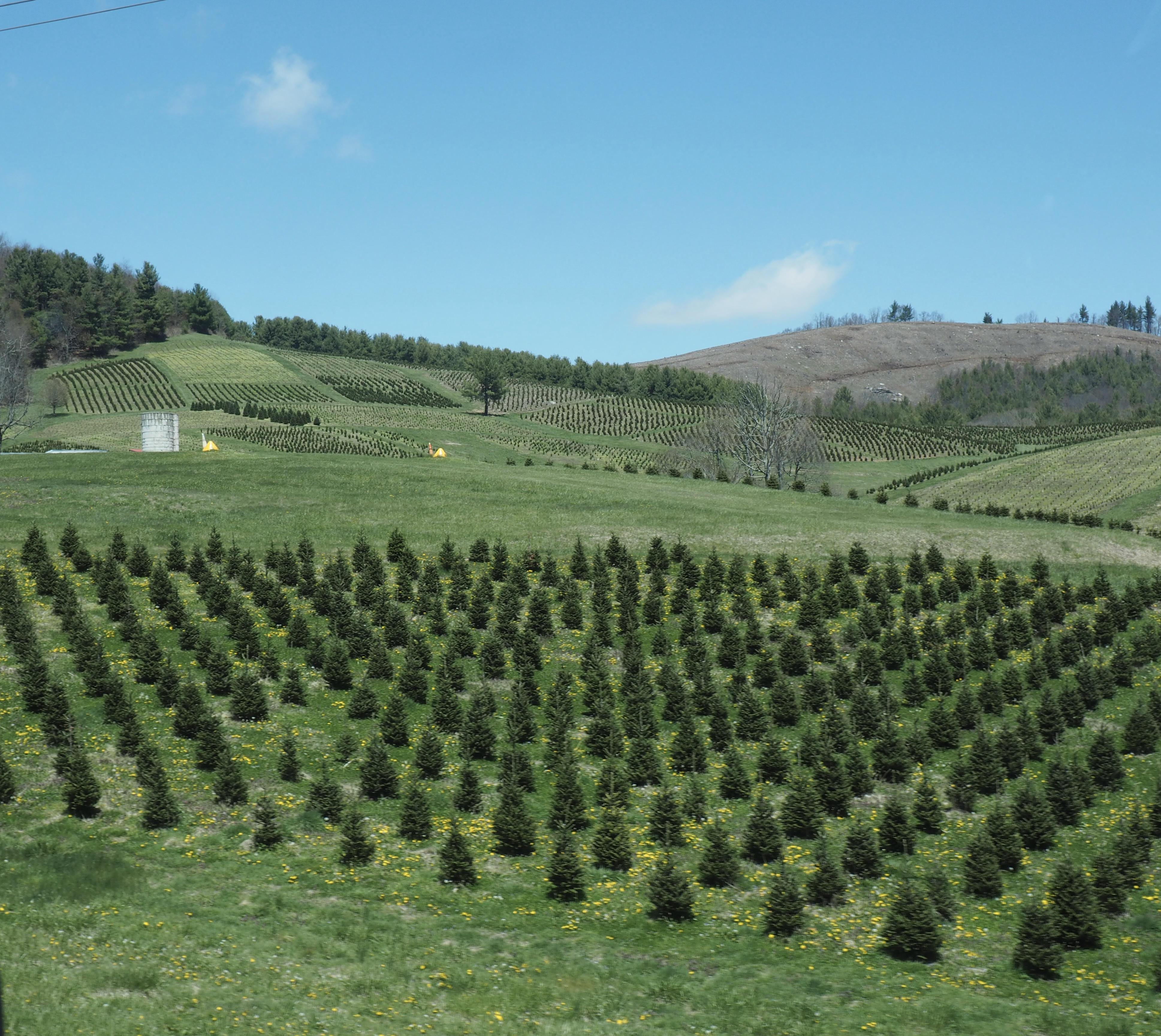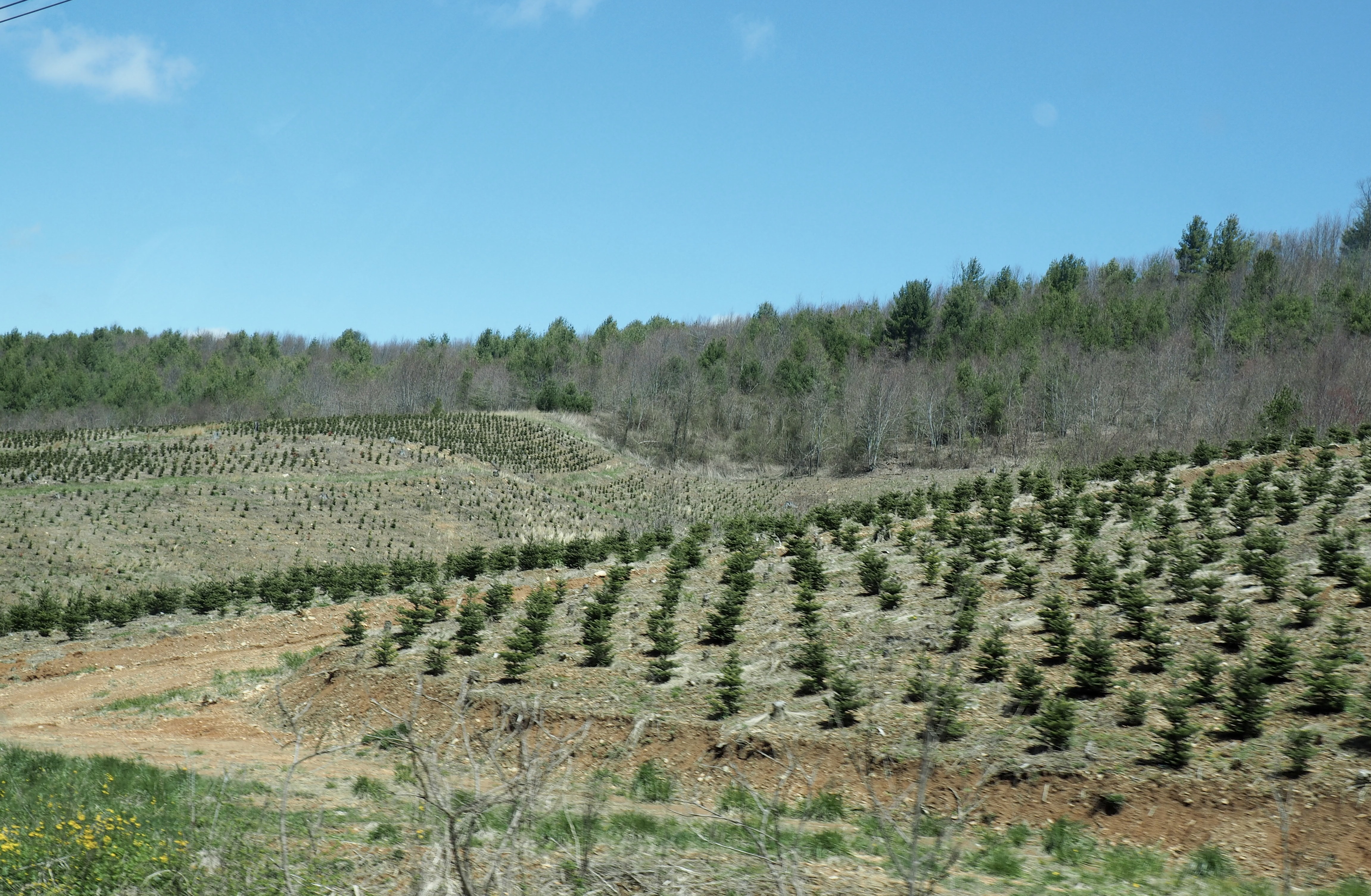 We’re not far from the Blue Ridge Parkway, the 469-mile national parkway that runs through Virginia and North Carolina. We drove a part of it on a trip 5 years ago, but the weather was so cold and foggy we deserted it after just a few miles. This time the weather was beautiful, but cold…36 degrees as we stopped at various viewpoints and took a quick look around the historical 1889 Brinegar cabin property. Returning by way of an alternate route, we saw acres of Christmas tree farms decorating the landscape.