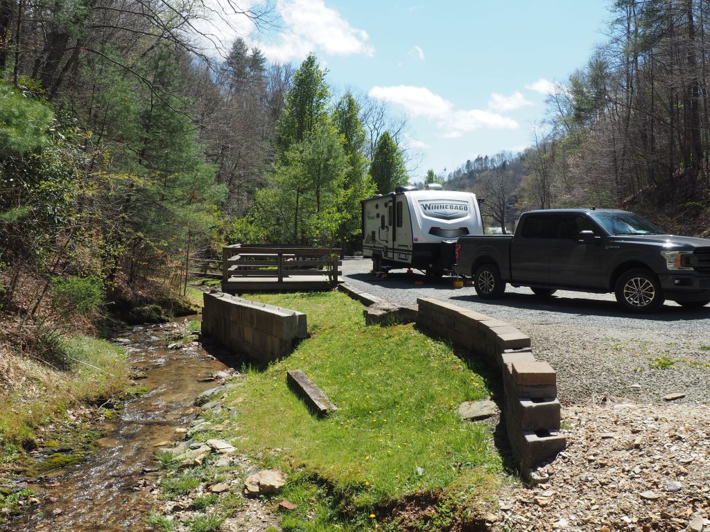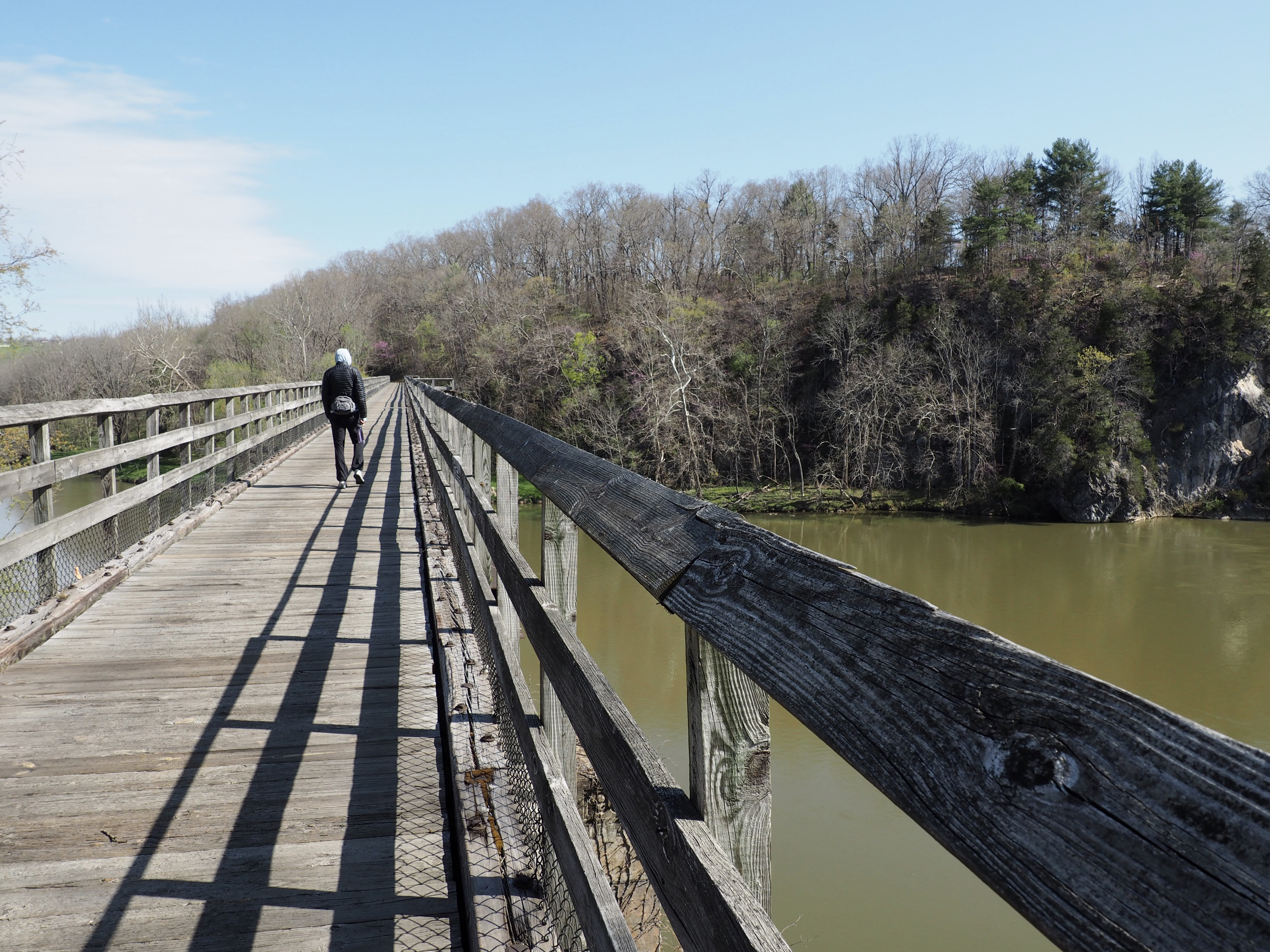 A six-mile roundtrip walk along the New River Trail State Park, a 57-mile strip that follows the abandoned railroad right-of-way, got us out of the truck for some much needed exercise. With two more days to fill and temperatures promising to warm up into the 70s (F), we expect to explore more of this rail trail with our bikes.