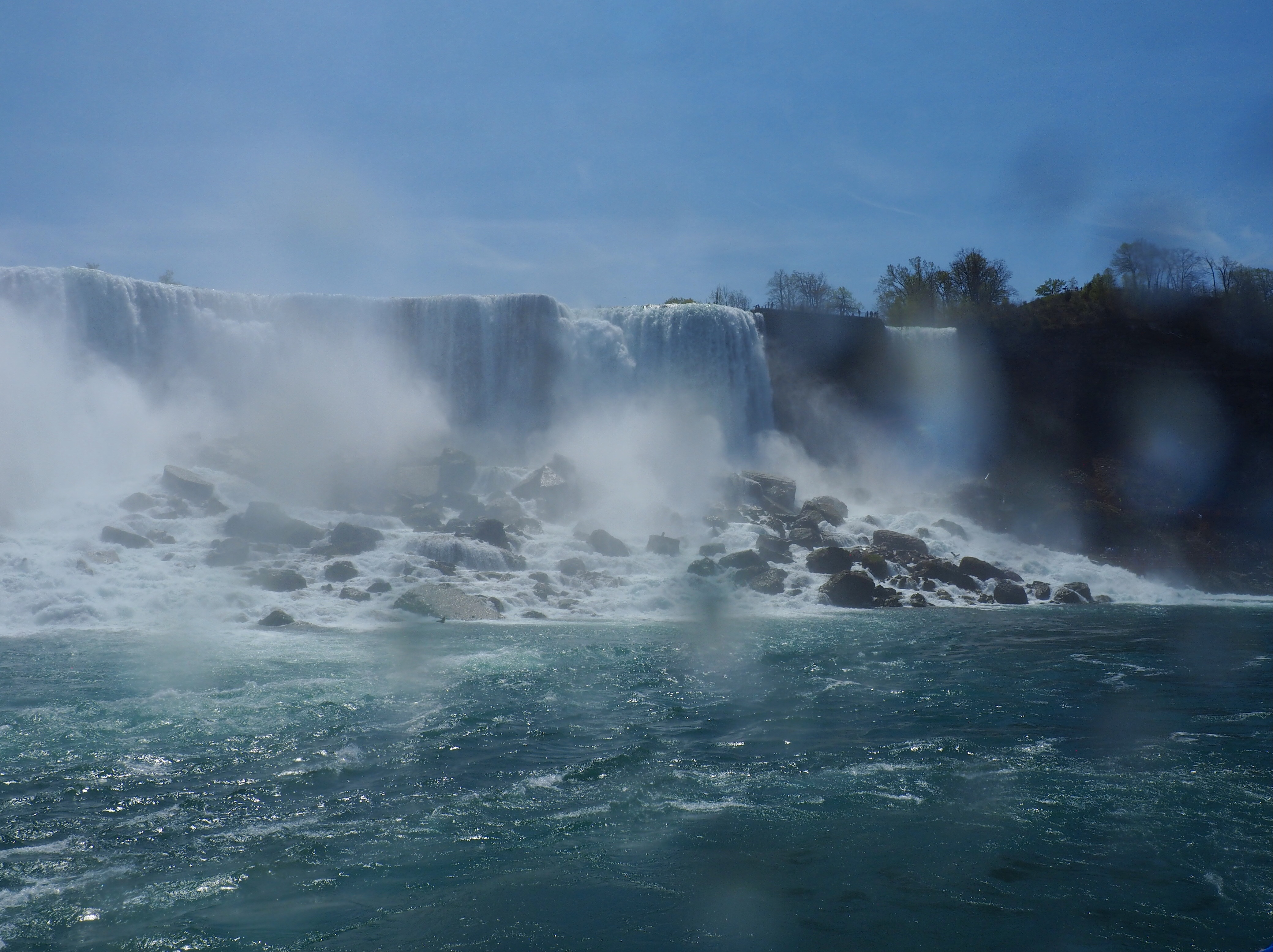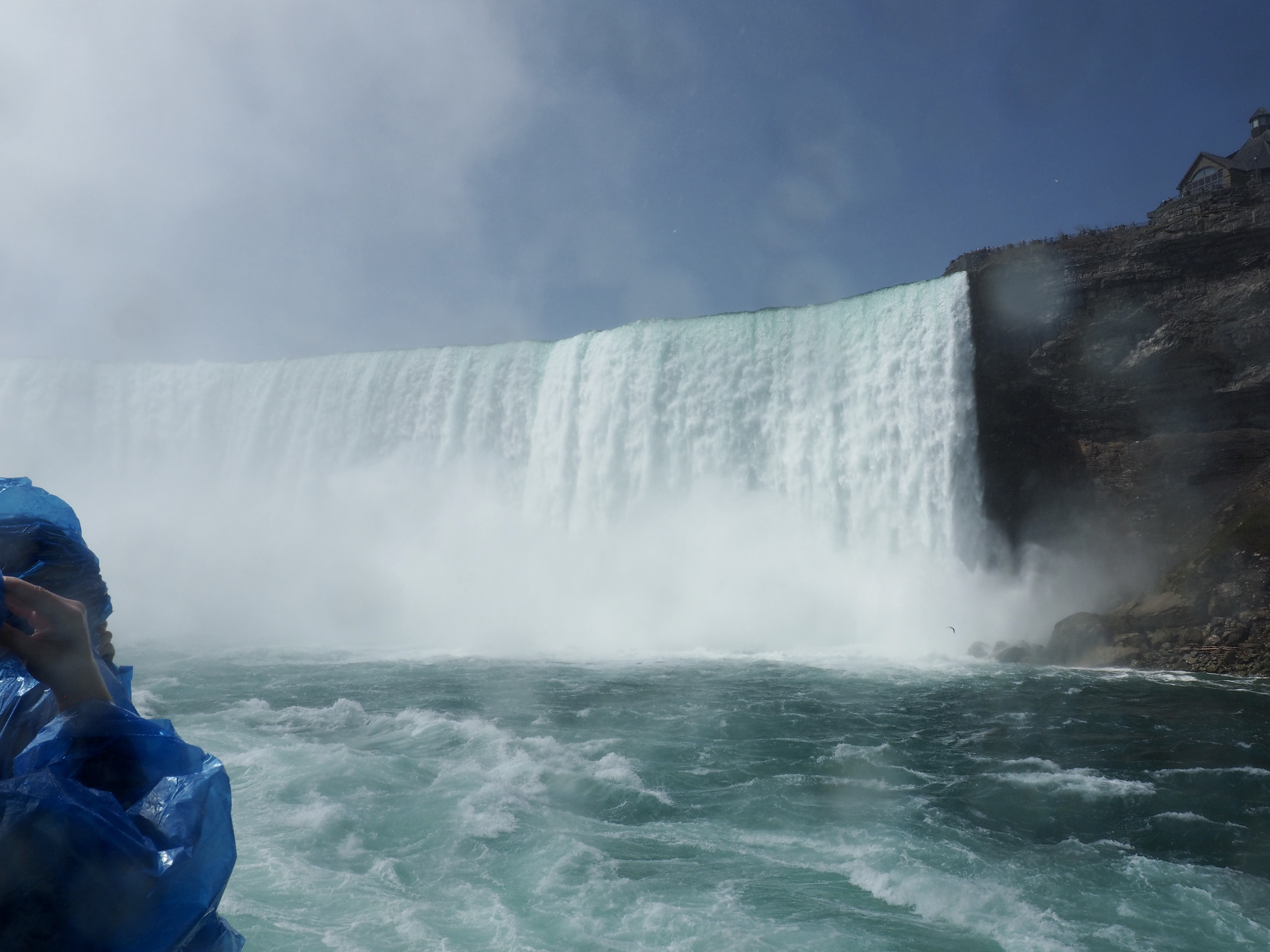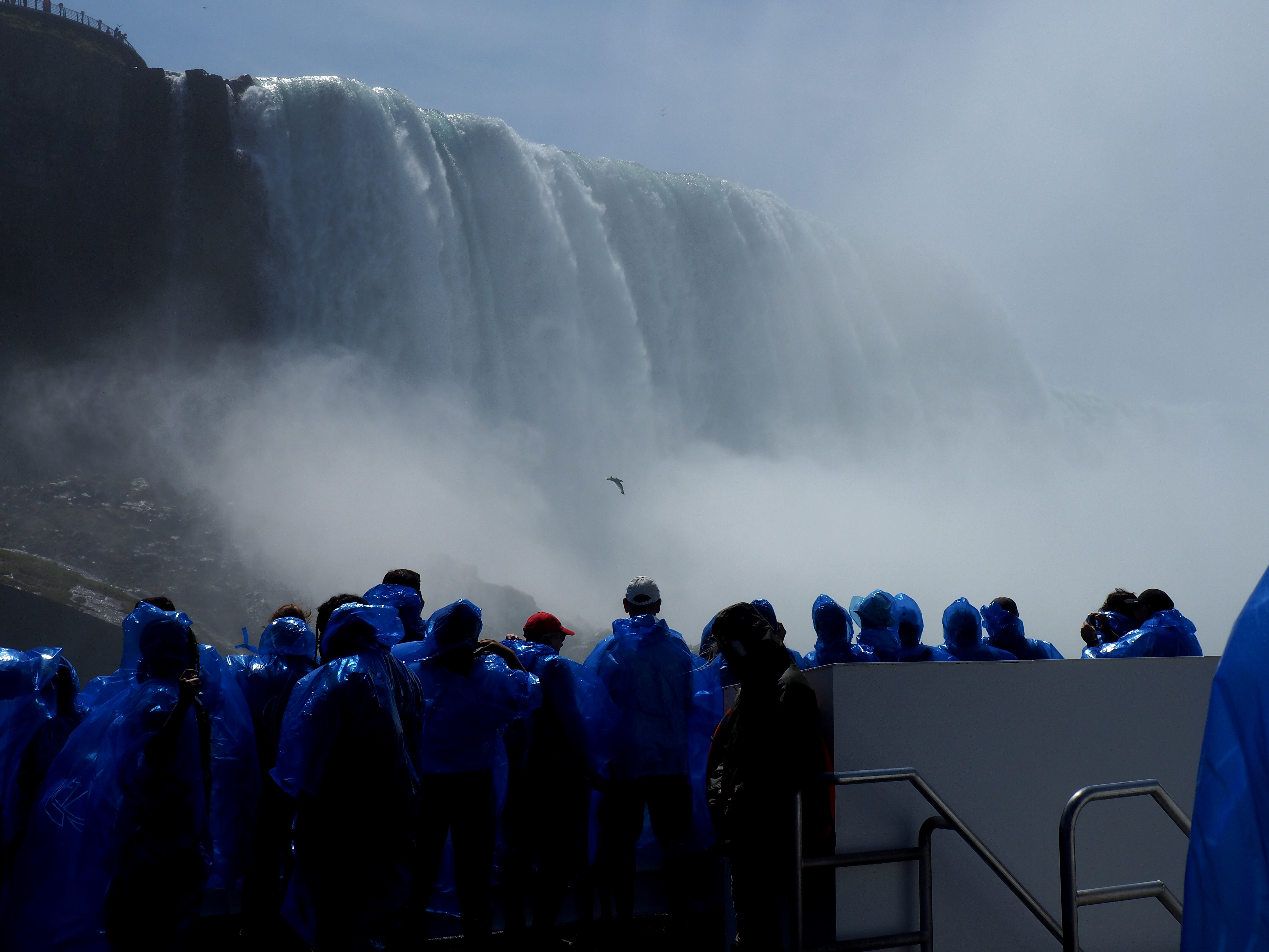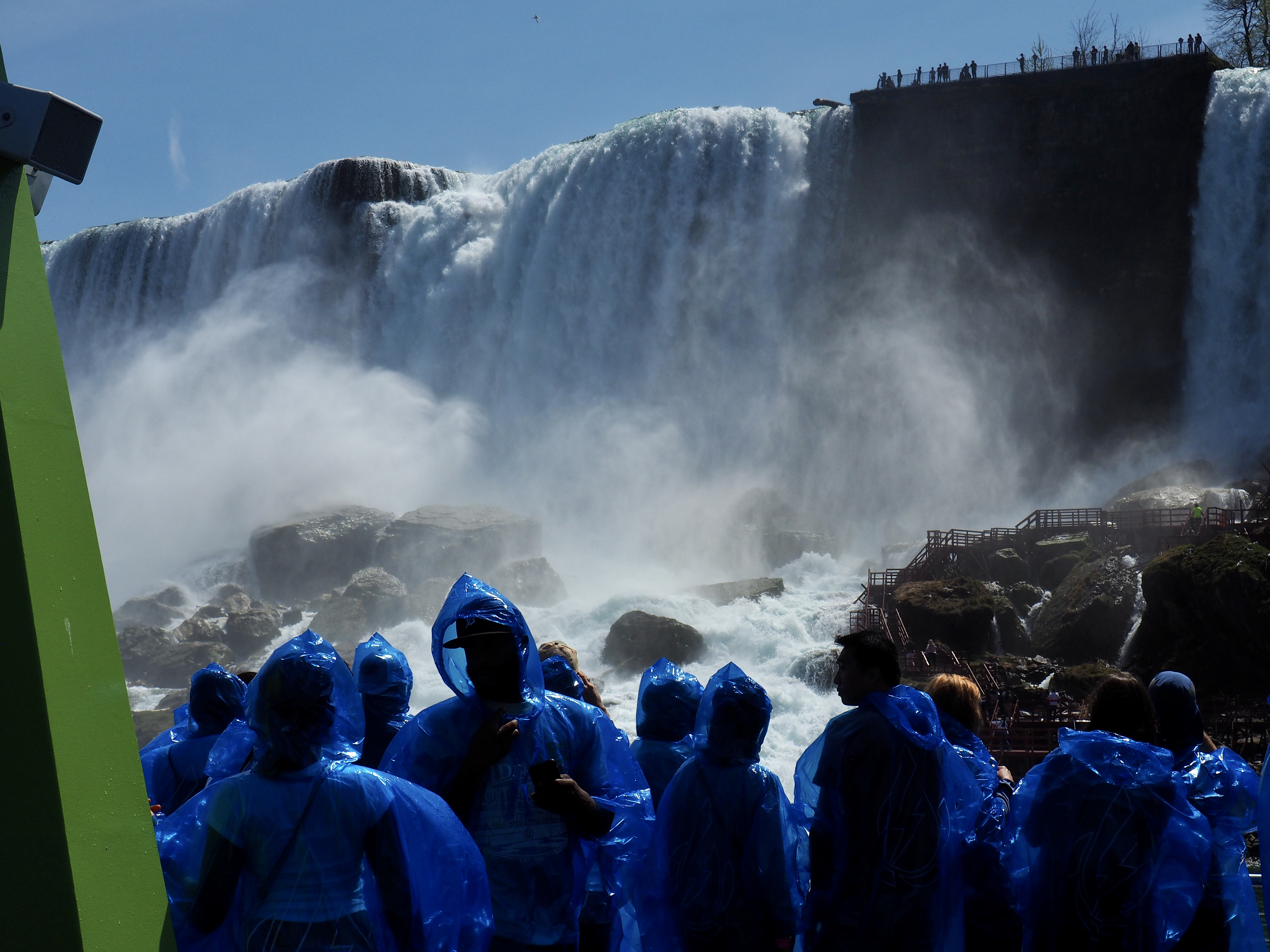 We had a beautiful, warm day and Niagara Falls State Park was surprisingly uncrowded. We had no trouble securing tickets for the Maid of the Mist, the boat that would take us to the bottom of the falls. The U.S./Canadian border splits the Niagara River and as we set sail in our American blue waterproof ponchos, we waved to our Canadian neighbors returning to port, decked out in their country’s red plastic ponchos.