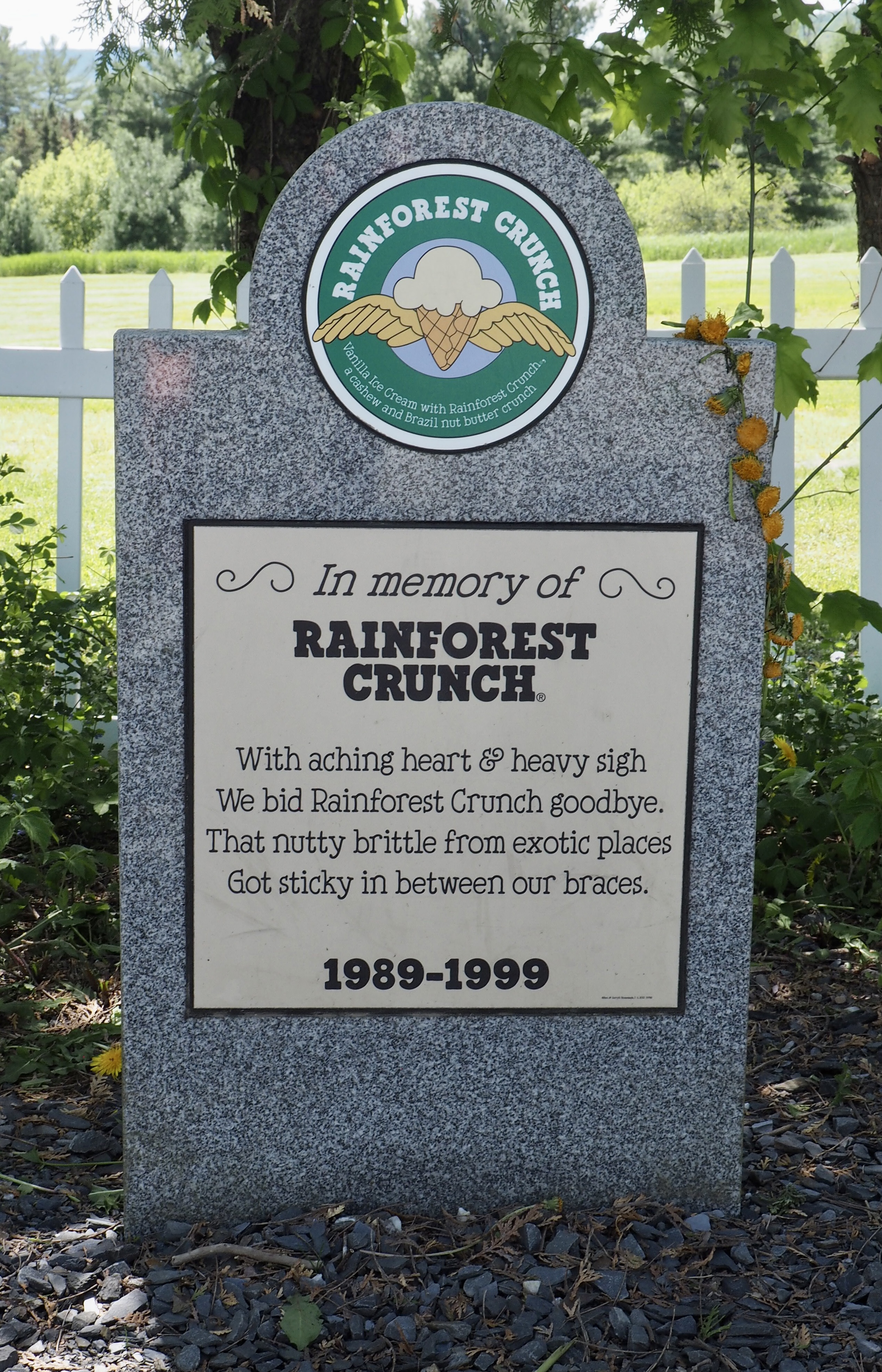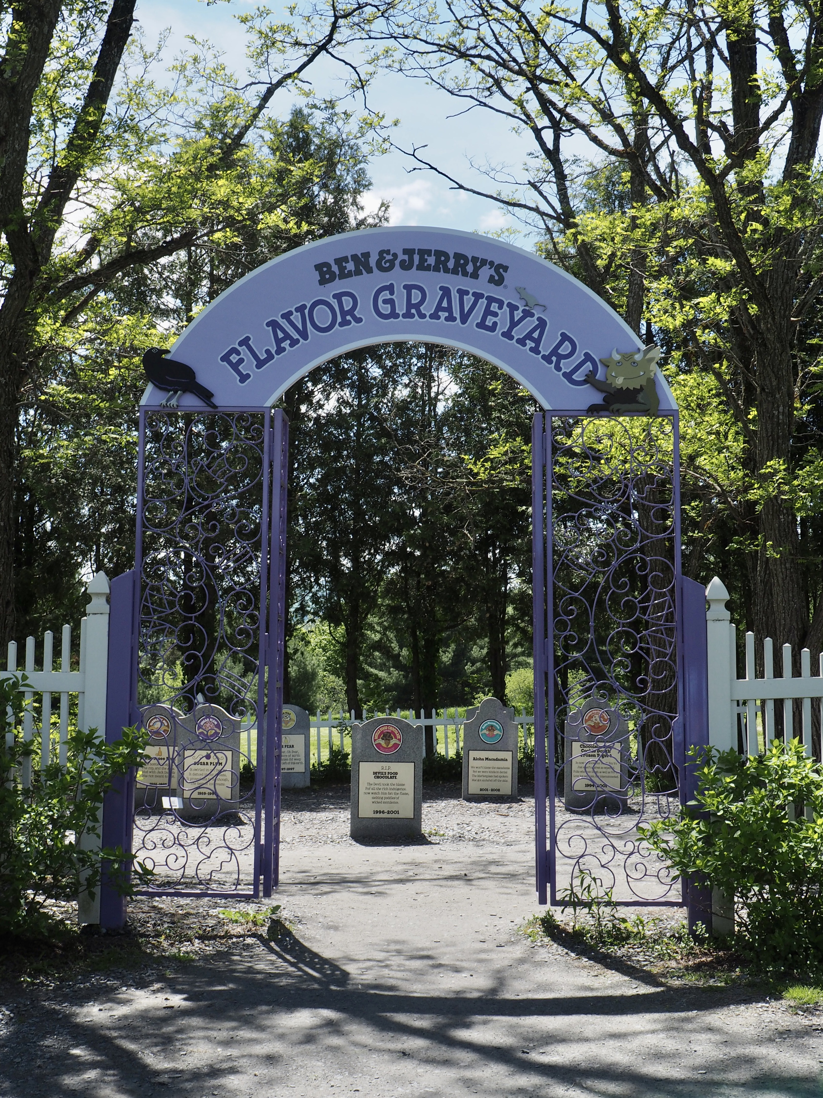 We were on our way to explore Vermont’s winter ski capital of Stowe and might have missed our chance were it not for a google map reference to Ben and Jerry’s Flavor Graveyard. Curious, we pulled in and found a clever display of tombstones paying tribute to retired flavors; some old favorites and others, well…just old.
