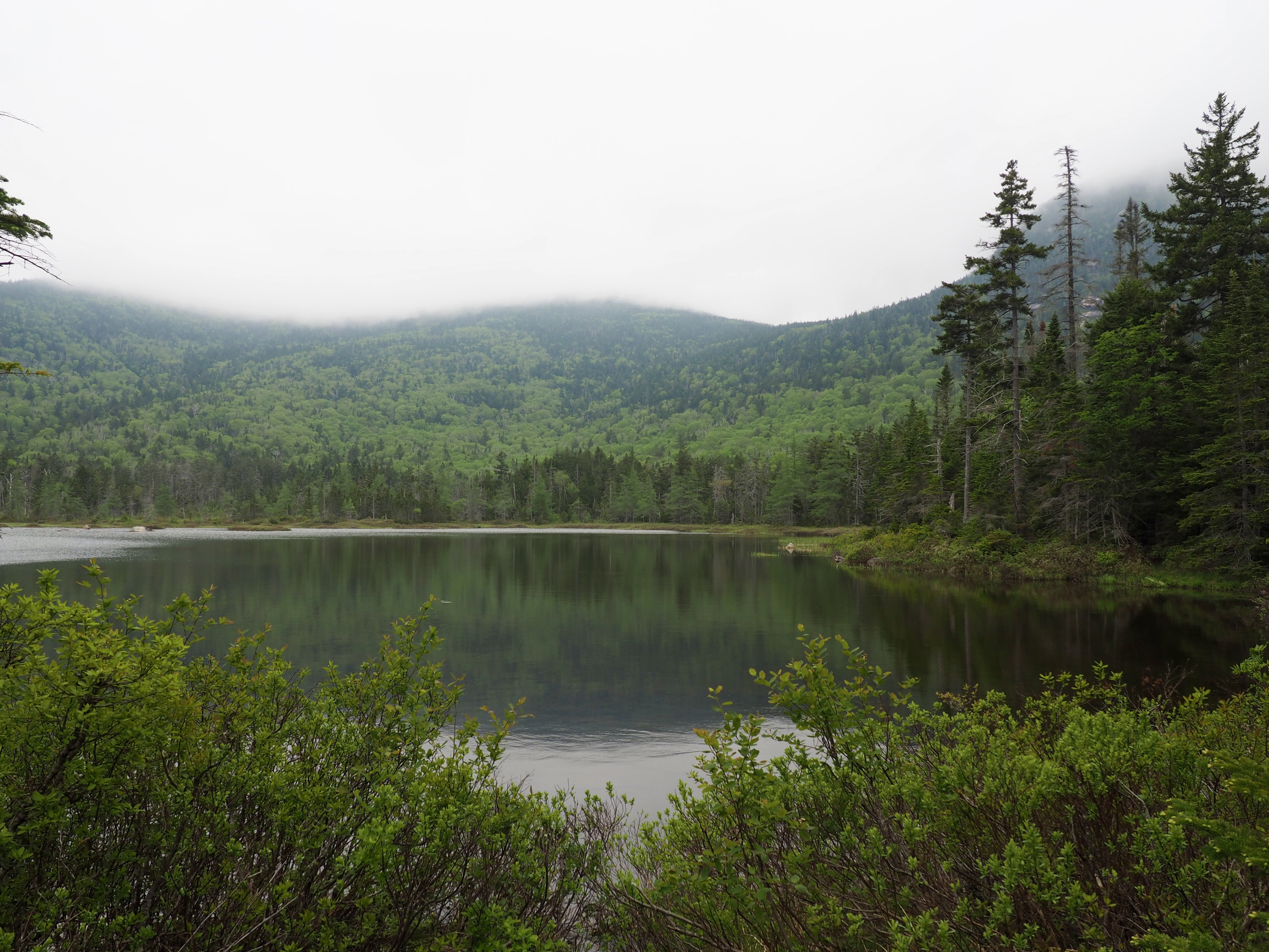 We weren’t the only hikers trekking up the trail to Lonesome Lake, but once we arrived it was just us and one lone fisherman hanging out lakeside. The 1.25 mile trail was uphill all the way. If the weather had been a little nicer we might have opted for the extra mile or so around the lake, but fearing drizzle and wet rocks on the downhill trip, we simply ate lunch and headed back.