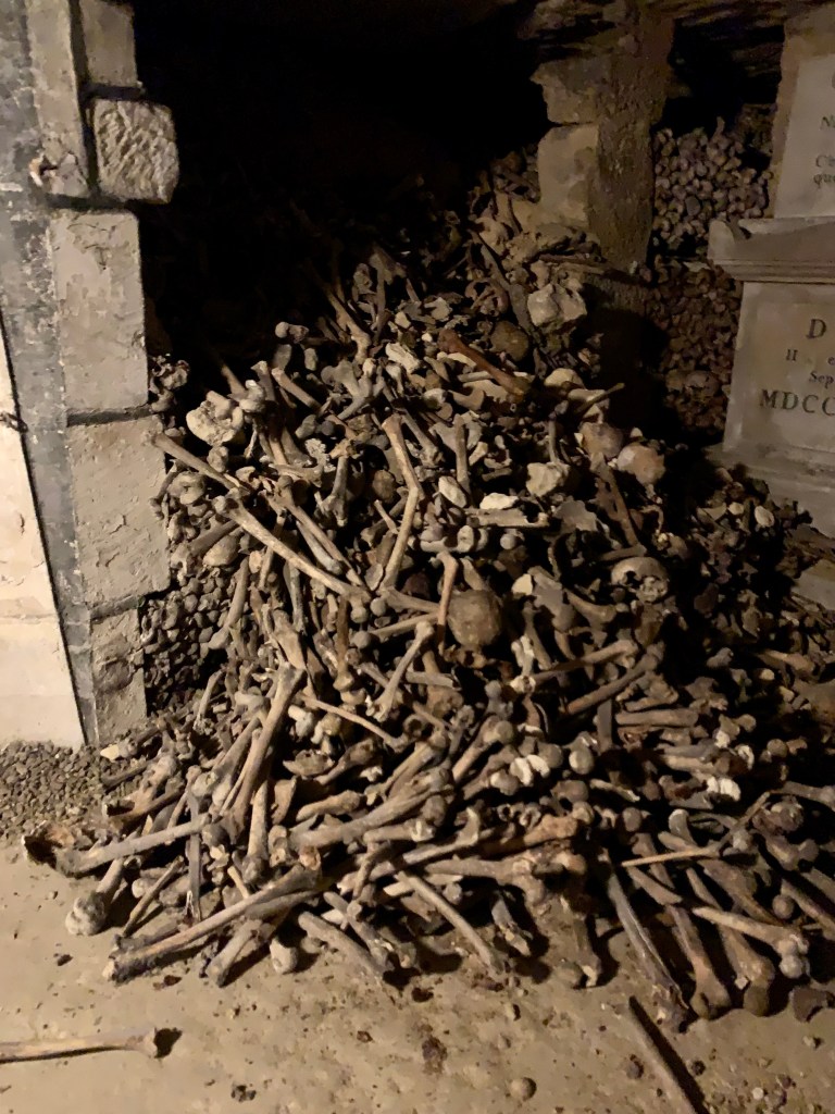 Our adventure of the day took place in the Catacombes de Paris, one of the more unusual (creepy), yet popular tourist attractions.