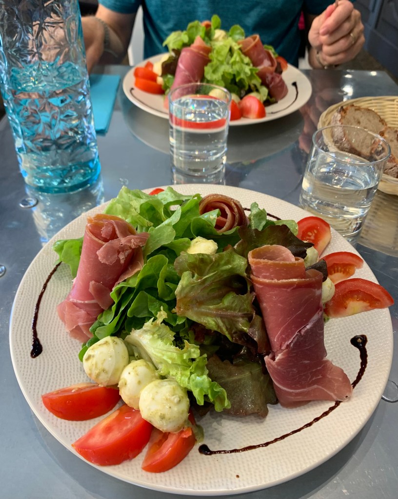 It’s easy to see why Conques is considered one of the most beautiful villages in France. We dropped our packs at our hotel and our next stop was lunch. Fresh vegetables are rarely offered at our meals, so the choice of a salad was irresistible.