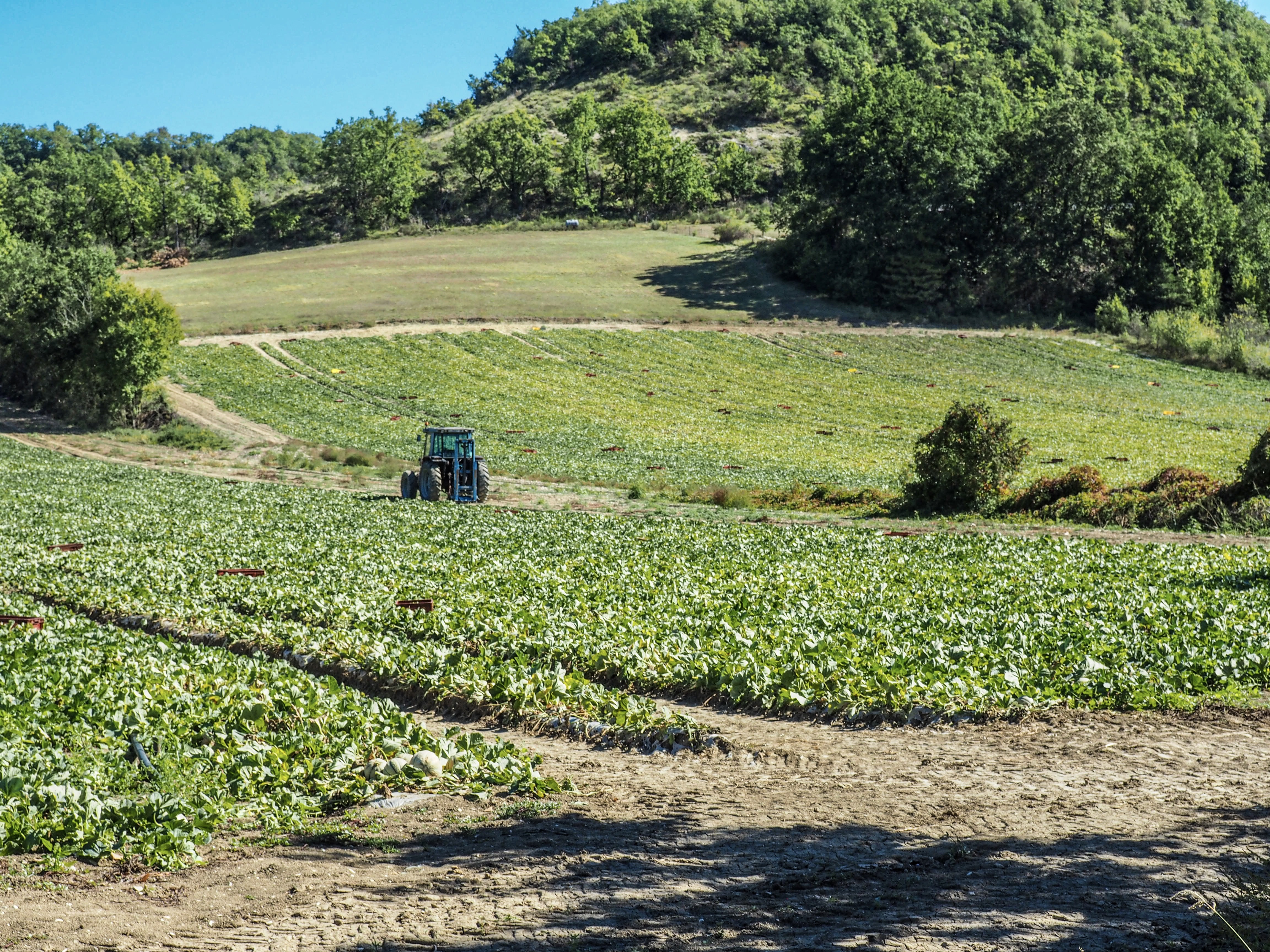 We walked up and down steep, rocky slopes and through beautiful farmland – like the fields of cantaloupe pictured below.