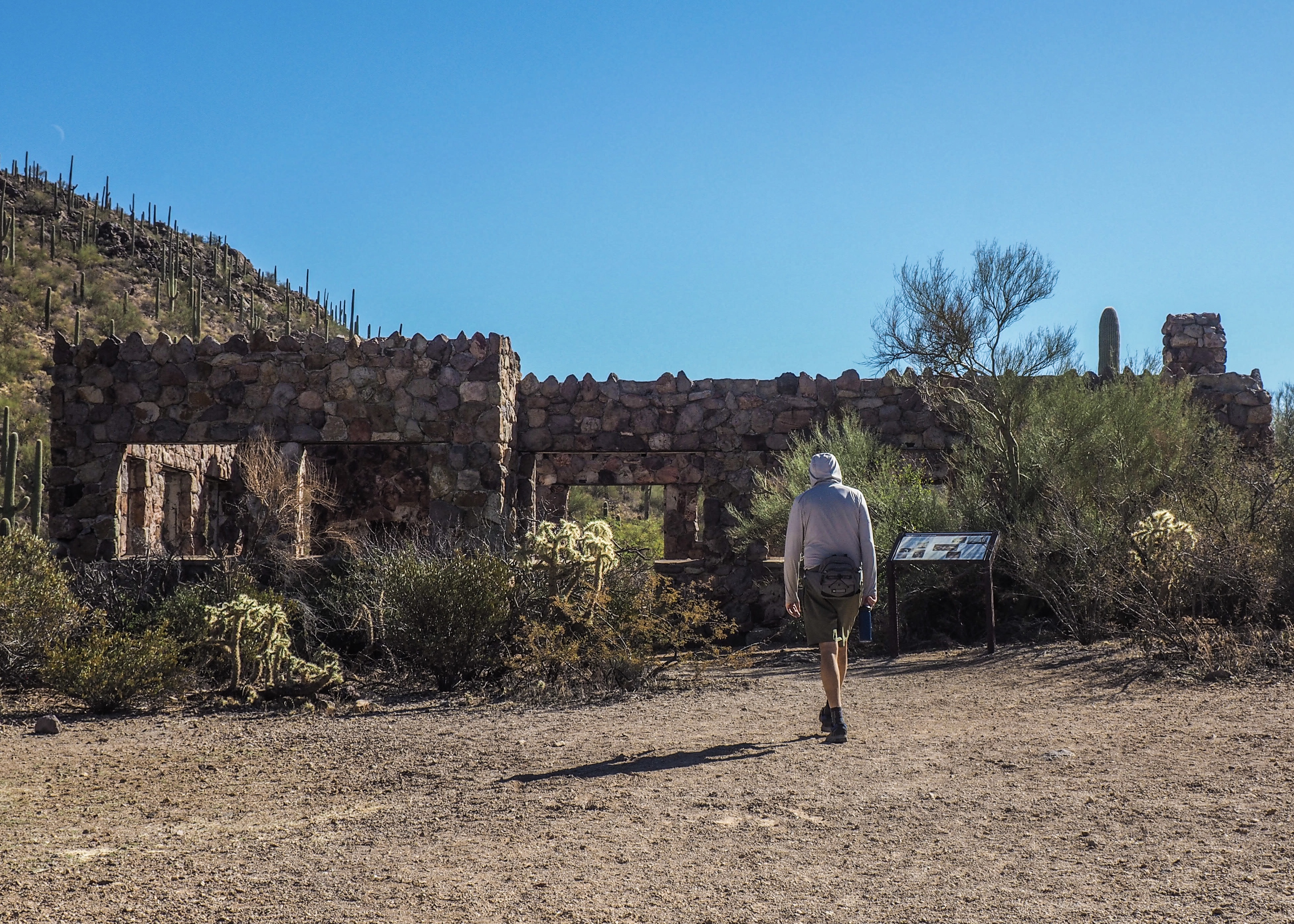 We chose the Yetman Trail with a connector to the Rock Wren Trail. Along the way we passed by remains of an old rock home Sherry Bowen and his wife Ruby built when homesteading 2,000 acres in the 1930s. It was hard to imagine how extremely harsh desert life must have been back in their day.