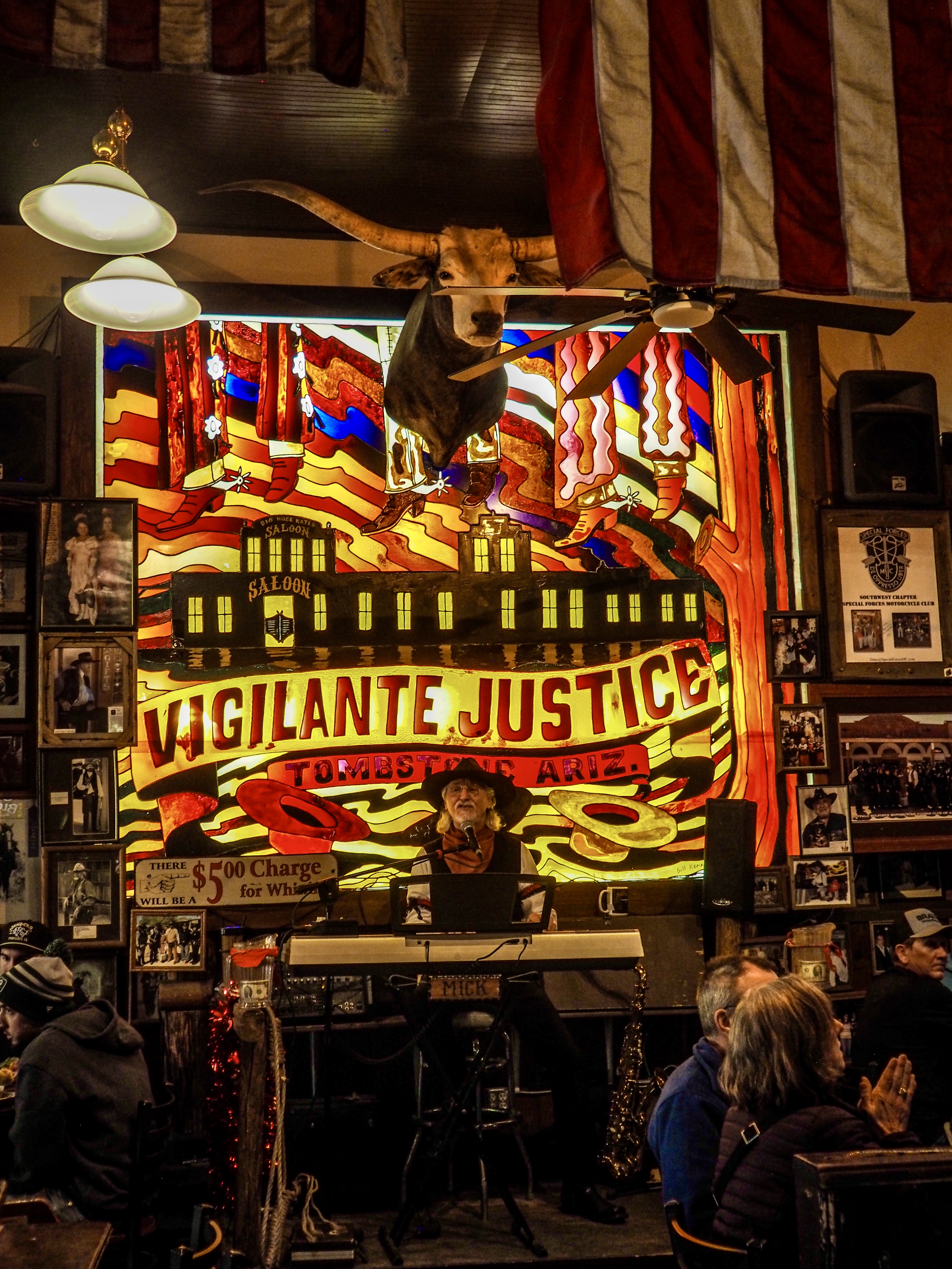 Home to the O.K. Corral and nearby Boot Hill, there’s plenty to see and do in Tombstone. Mine tours, entertaining, family-friendly gunfights, stagecoach rides and gift shops with everything from cowboy boots to silver jewelry. Since we had visited several years ago, we skipped the tourist things and simply wandered around, enjoying the atmosphere until lunchtime. We knew where to find good food and the rowdiest lunch crowd.
