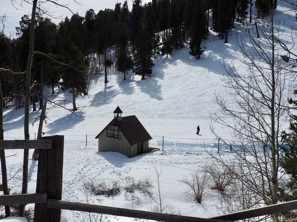 After several stops on our way to the top, we arrived at Summerhaven, parked and strolled along the town’s main street. Things were a little sleepy, but with all the homes (rentals?) and other lodging options we figured the population often swelled with vacationers. After a quick stretch of our legs, we were back in the truck, curious to see if the ski slope was operating.