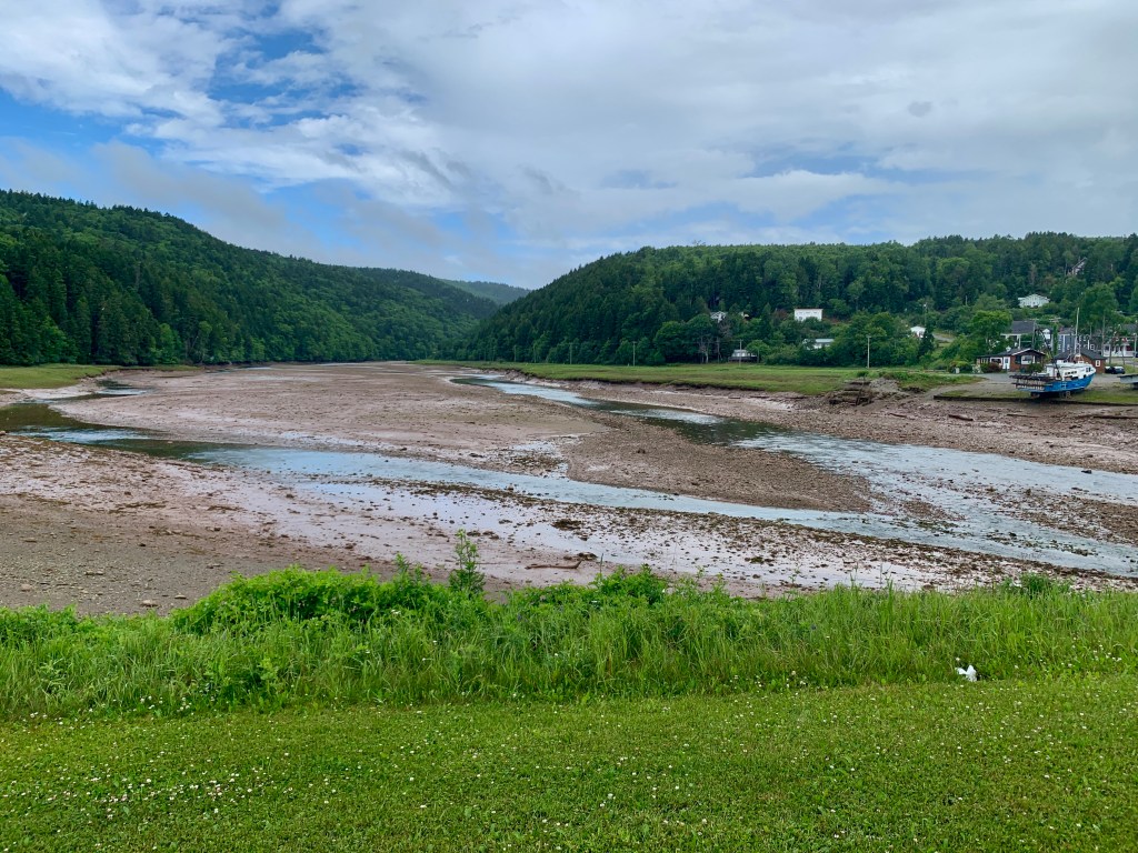 While visitors flock to Hopewell Rocks Provincial Park to watch the rising and falling water and to see the famous sea stacks (known as flower pots), Reg and I got our first glimpse of the tidal phenomenon in the town of Alma.