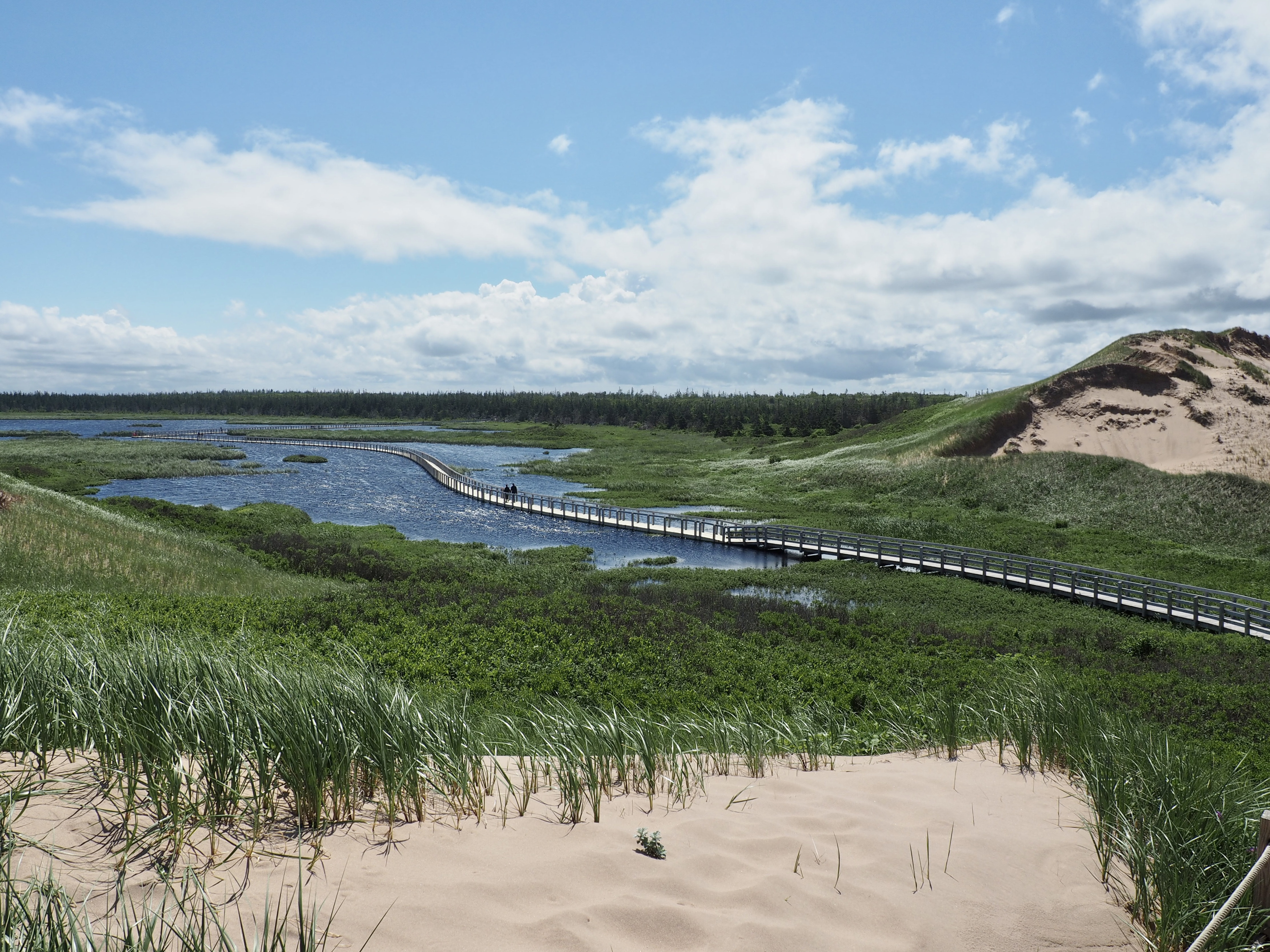 A visit to Greenwich, Prince Edward Island National Park remains one of our favorite outings. Trail signs led us to the park’s (not quite half mile) floating boardwalk leading over the dunes to the beach.