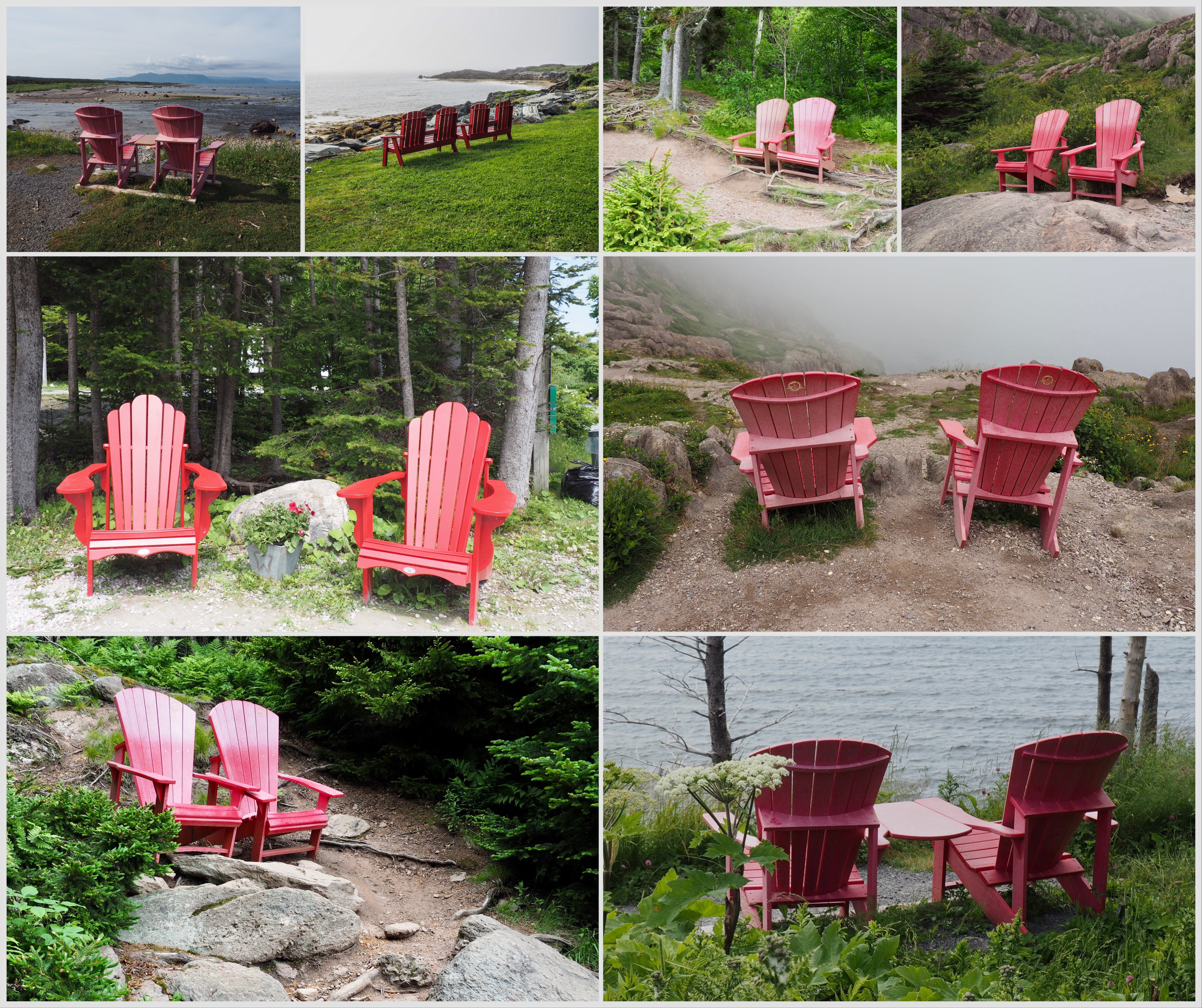 Nothing symbolizes vacation relaxation more than an iconic Adirondack chair. As we explored Canadaโs Atlantic Provinces, red ones kept popping up in the most surprising locations. Often they were placed several miles from a trailhead, inviting us to sit, but leaving us wondering who had wrestled them through trees, over rocks and up and down stairs.