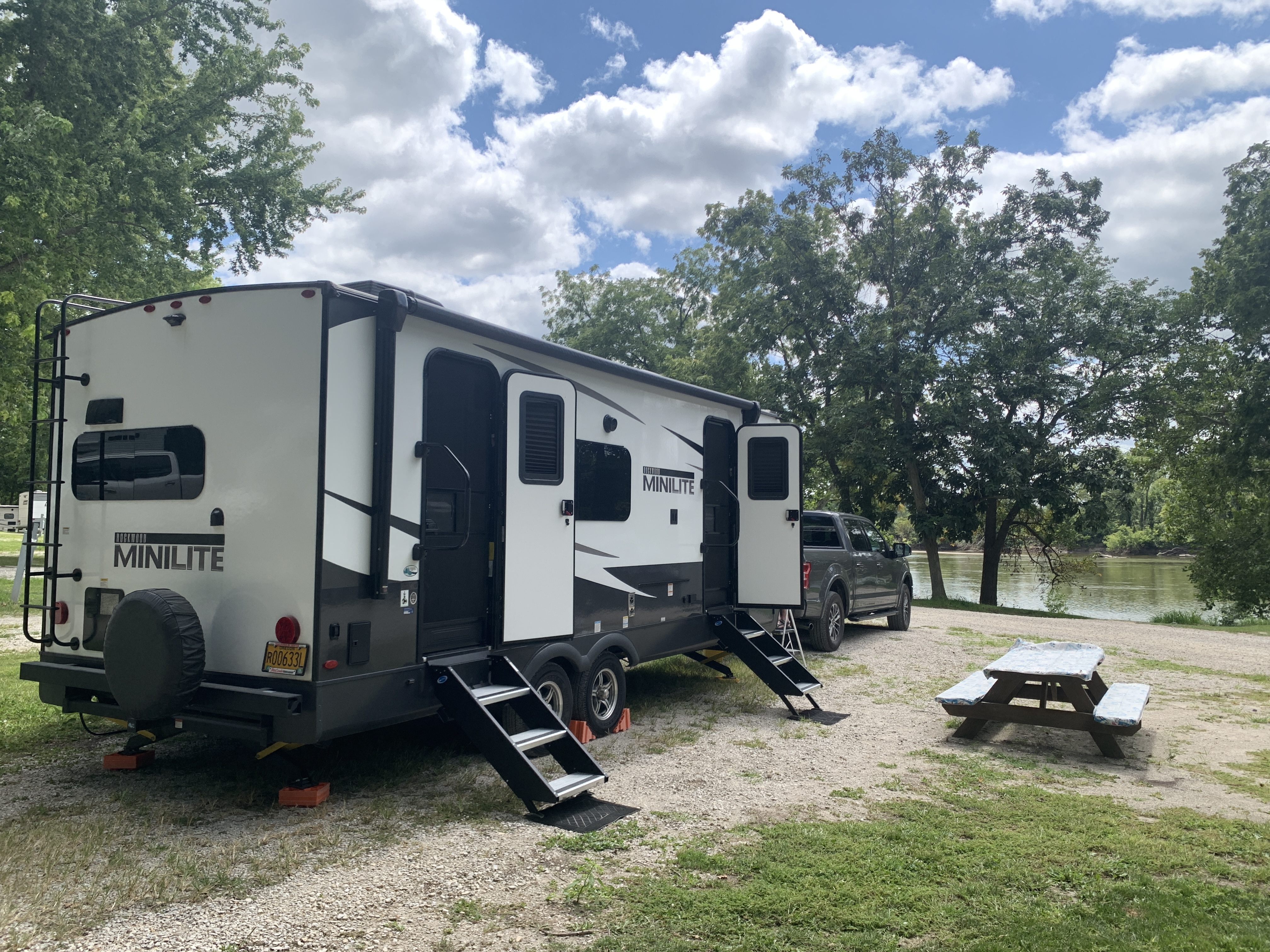 As we drive back across the U.S., we’re taking our chances, booking one day ahead. After securing a site at the Iowa campground pictured below, Reg put down his phone and said, “Well, this should be interesting.”