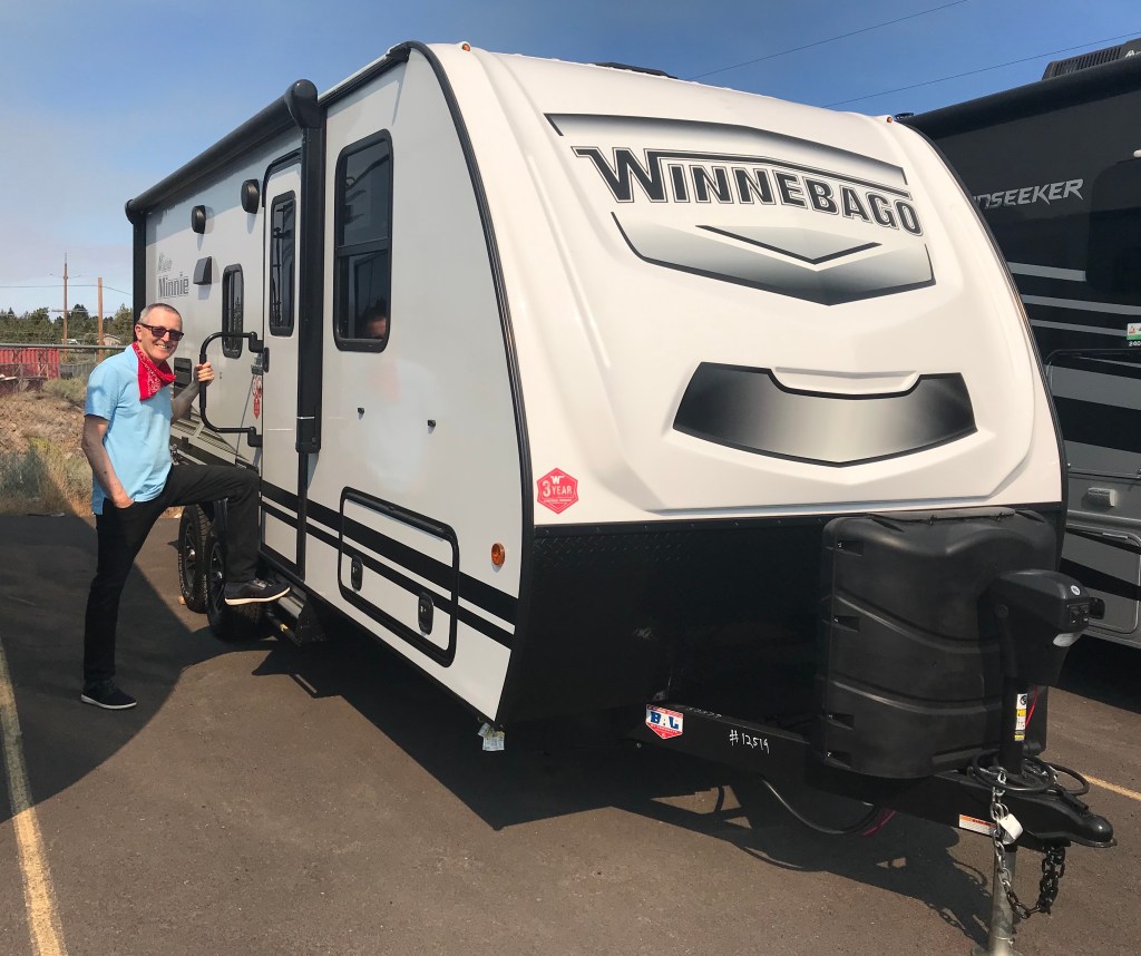 In 2020, we traded our Rockwood in for a slightly larger Winnebago Micro Minnie 2306BHS (left), and continued our travels, often packing our bikes under the bunkbeds.