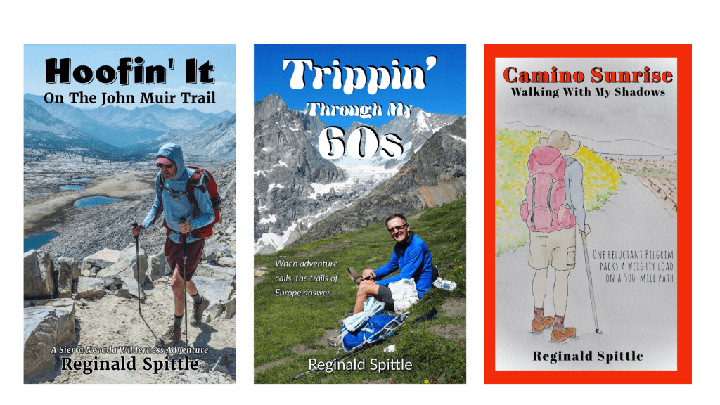 Reg recently released his third book, (here’s a link) Hoofin’ It On The John Muir Trail, an adventure memoir recounting our 30-day trek through California’s Sierra Nevada mountains. This, along with his other two books, is available at Amazon.com.