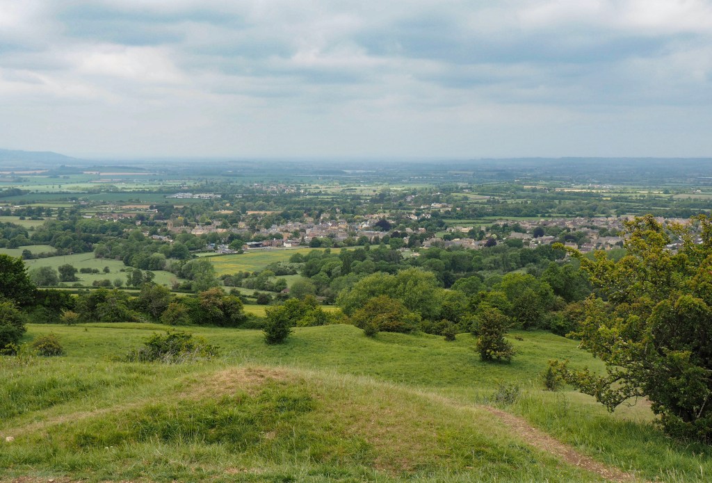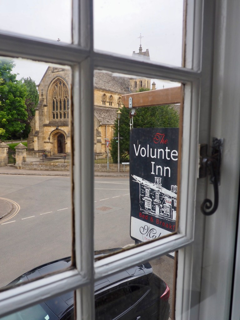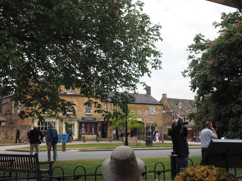 Today’s walk began with (what else) a pretty decent uphill climb. Our destination: the tourist town of Broadway, just six miles away. But first, we had lots of distant views, sheep pastures, wheat fields, acres of fields of what we think were peas and even a tower perched atop a hill.