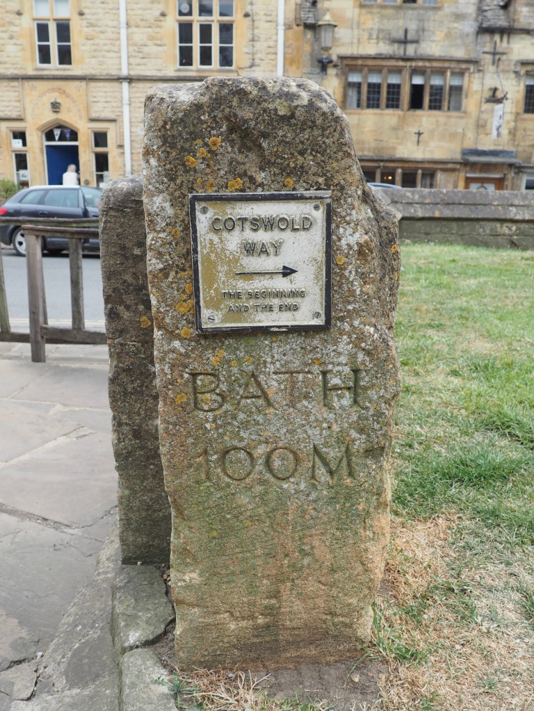So nobody could accuse us of cheating, we made the short walk back into town to the official starting point of The Cotswold Way. The marker is located next to the iconic Market Hall.