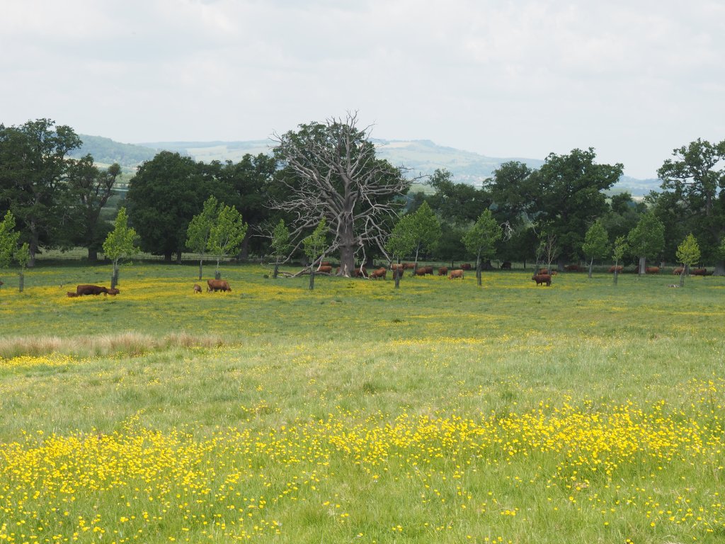 Today we skirted around fields of sheep, came head-to-head with some horses who expected to receive a goody before allowing us to pass and a herd of cattle, all hurrying to stand together under a tree that offered no shade.