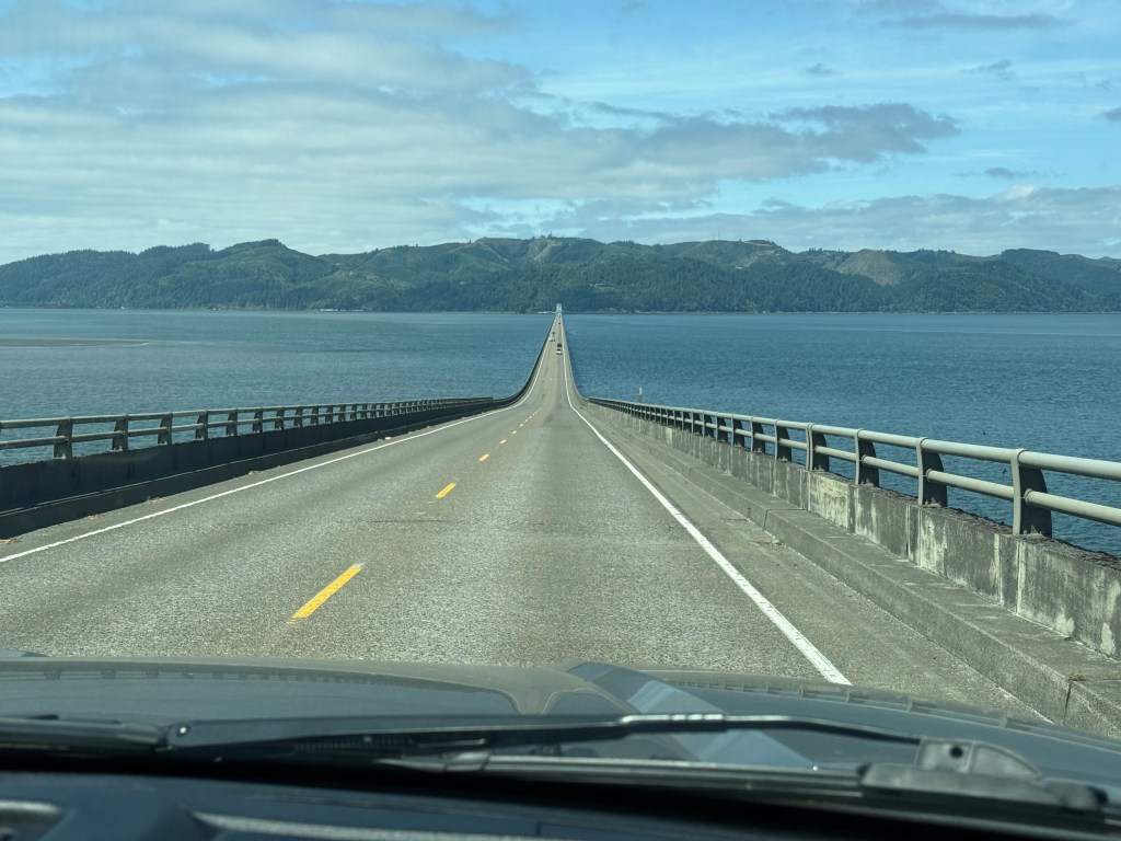 The Astoria-Megler Bridge spans the Columbia River, joining the states of Oregon and Washington. It soars 196 feet above the water (at high tide) and stretches just over four miles from shore to shore. It’s quite a thrill for anyone with a fear of heights.