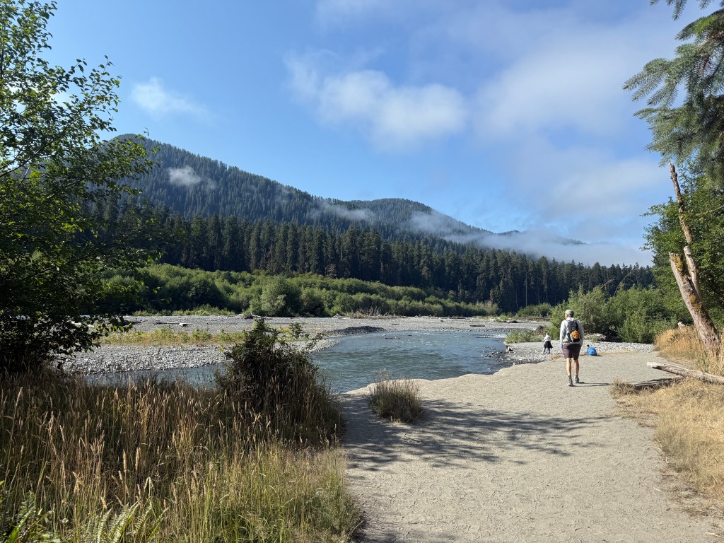 We really wanted to spend time in the park’s Hoh Rain Forest where we hoped to do some hiking. It’s one of the most popular spots in the park. Because parking is limited, it is suggested that visitors arrive early to avoid long waits (possibly an hour or more) at the entrance kiosk. Unfortunately, that meant an early morning for me.