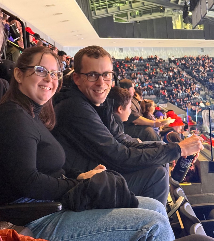 Brad and Ashley found us tickets to a Sacramento Kings game. Andrew and Charlotte made a surprise visit and joined us for an after Christmas celebration. It was “Family Day” at the Golden 1 Center…sponsored by Sesame Street. We got in the spirit and grabbed the free souvenir hats on the way in!