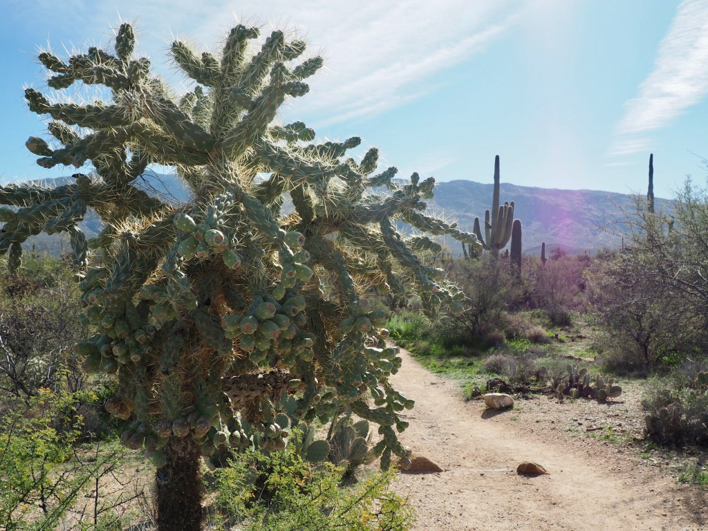 Because the Tucson temperatures have been steadily rising over the last week or so, and we were getting a late start, we chose a relatively short 3.9 mile loop trail Friday through Saguaro National Park East. Unfortunately, we found a chunk of our loop was closed for renovation which left us winging it without a plan.